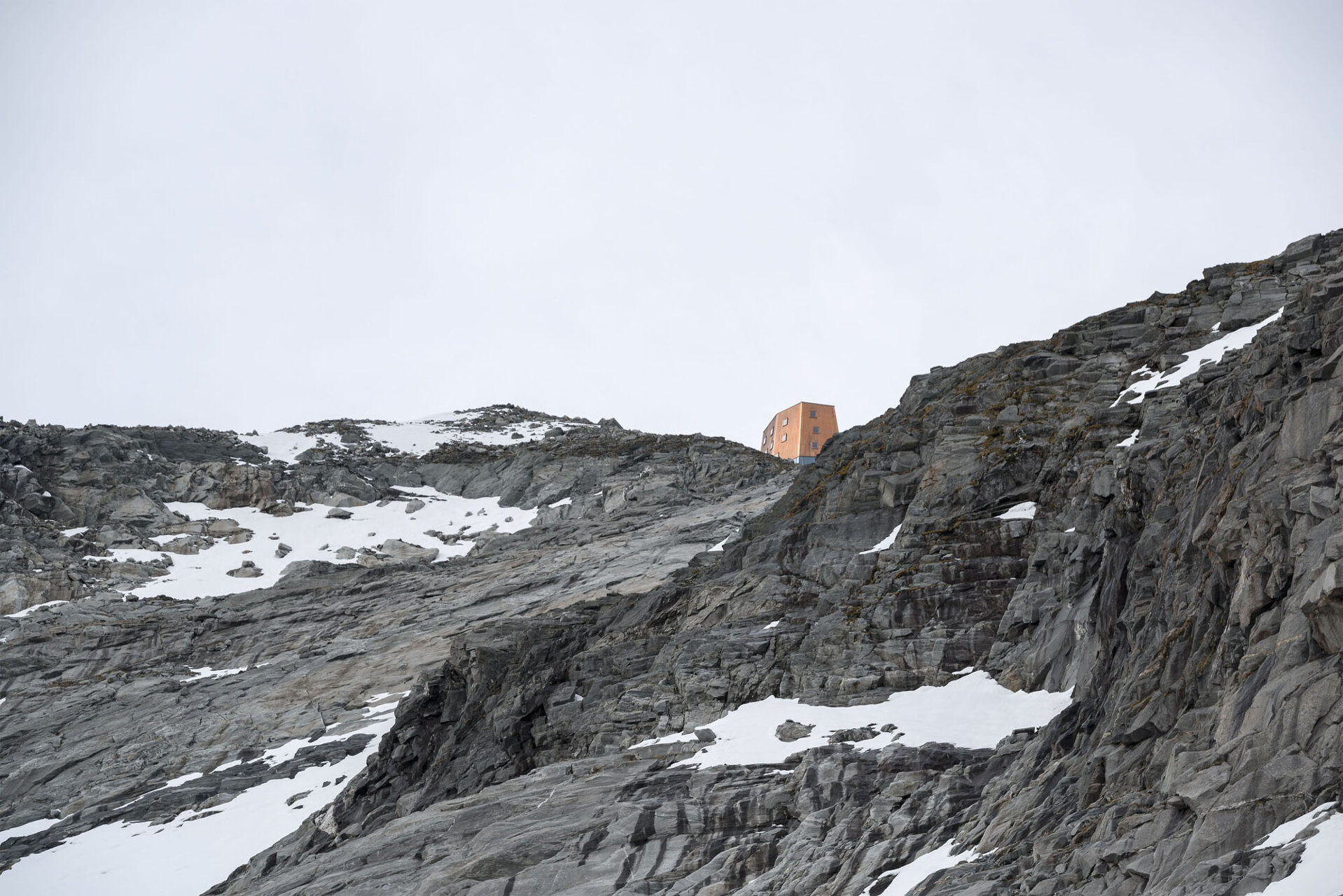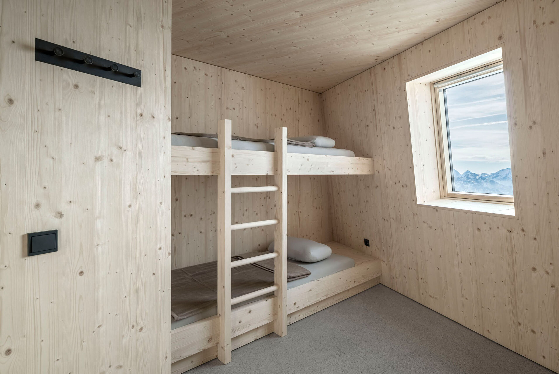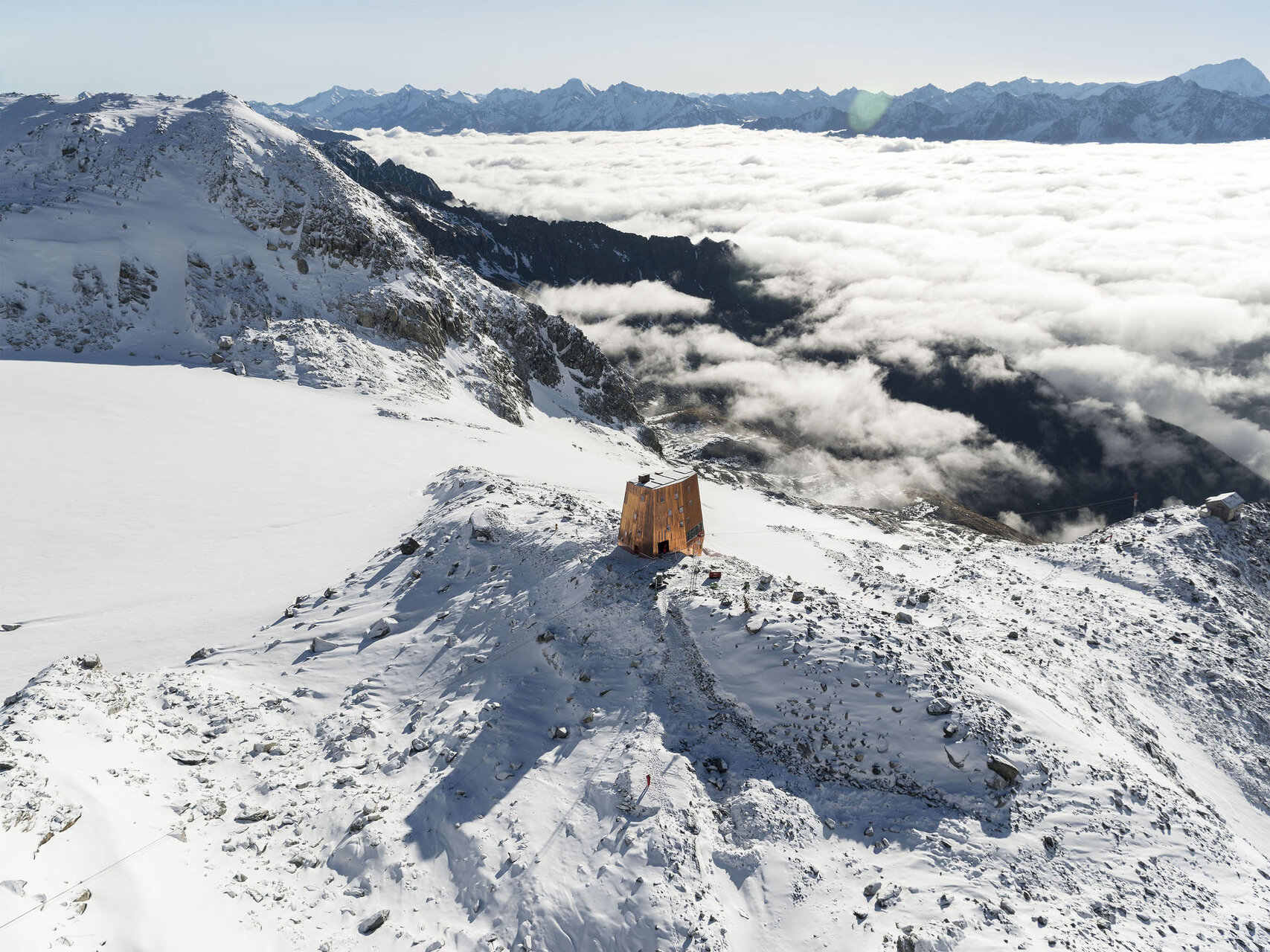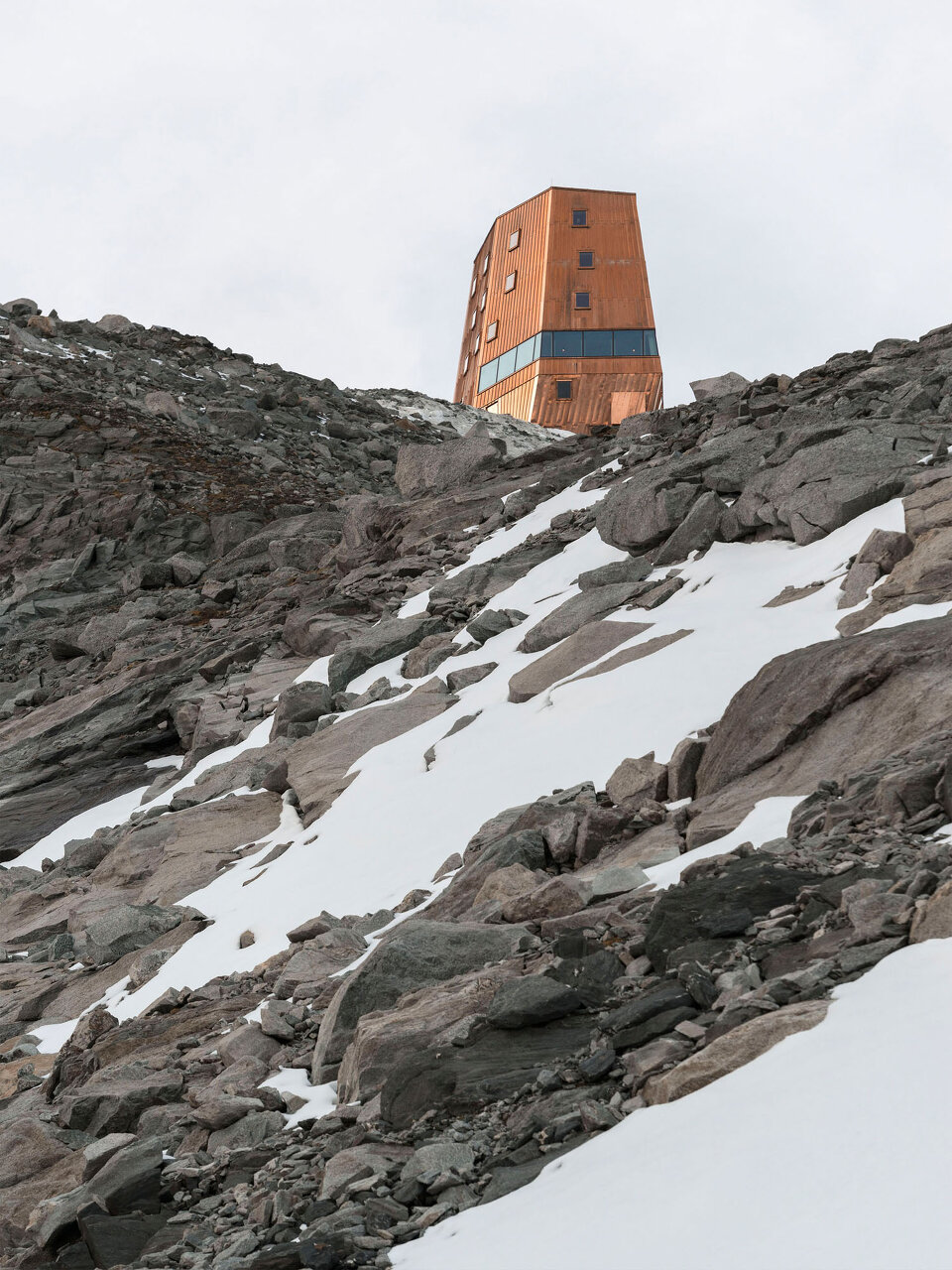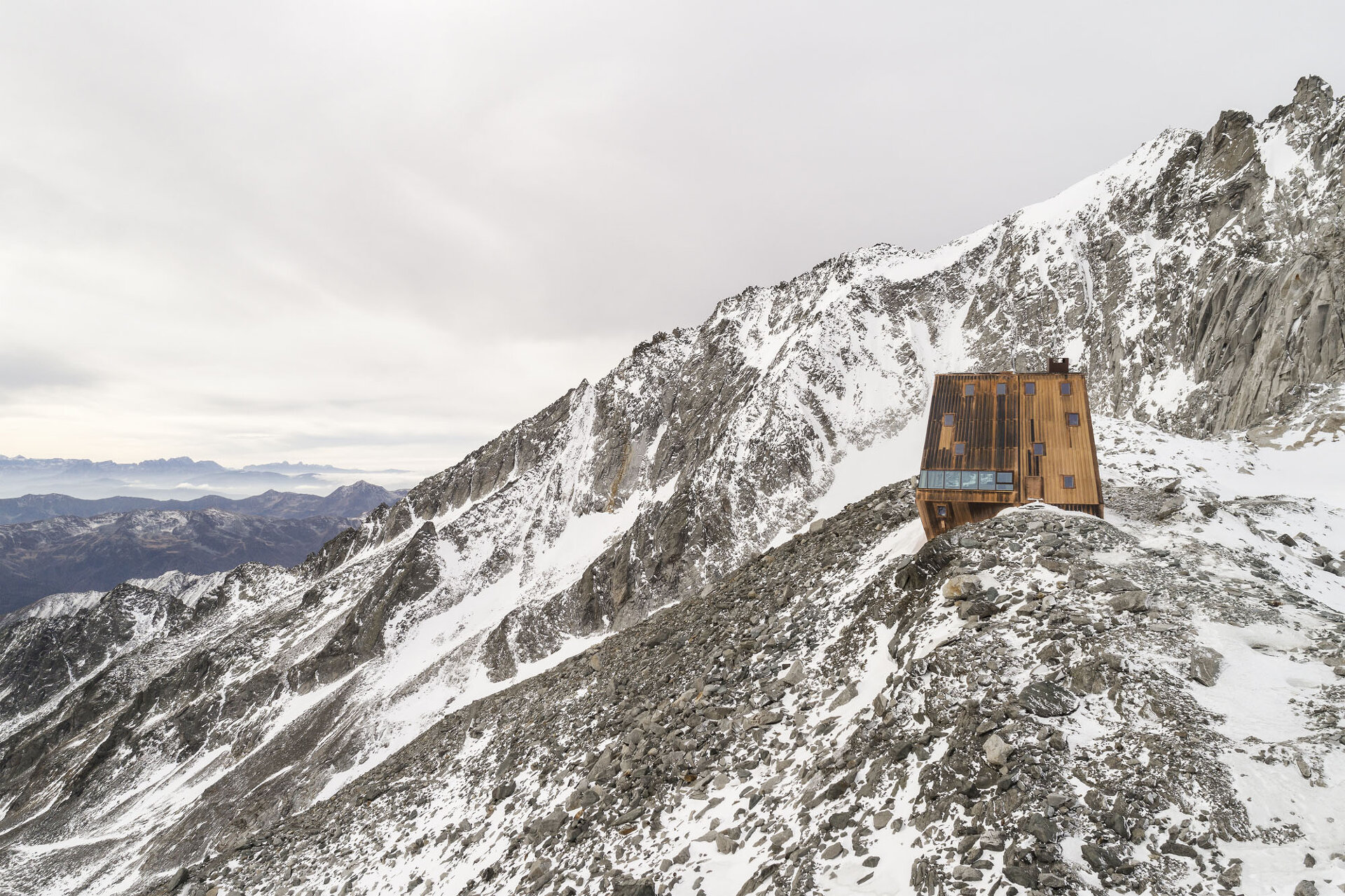 - Aus energetischer Sicht ist die neue Schutzhütte für den Sommerbetrieb von Anfang Juli bis Ende September ausgelegt. Die gesamte Dachfläche wird mit Kollektoren zur Stromerzeugung ausgestattet. Gekocht wird im Wesentlichen mit Gas und für längere Schlechtwetterbperioden oder für Zeiten mit höherem Energiebedarf steht ein kleines Blockheizkraftwerk zur Verfügung. Stube, Küche, Trockenraum und Sanitäreinheiten werden beheizt und mit einem kontrollierten Lüftungssystem ausgestattet, während alle anderen Räumlichkeiten der Schutzhütte ohne Heizung umgesetzt wurden.