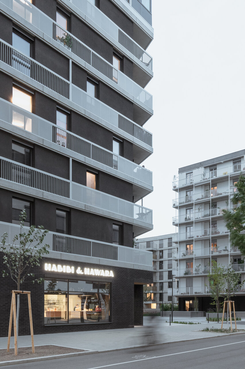 - HWB*RK = 18,61 kWh/m²a (Wohnen), 45,13 kWh/m²a (Geschäftslokale) (Energieausweis)