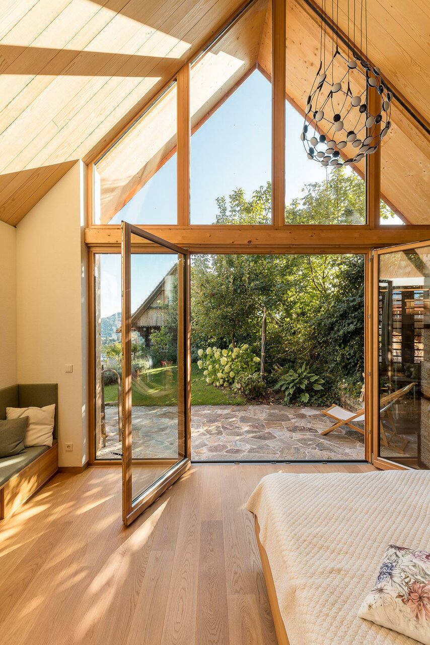 Die alten Häuser wurden vom „Speck der Zeit“ befreit. Nachträgliche Zubauten, Dämmungen, Innenausbauten usw. gänzlich entfernt und die alten Proportionen und Holzoberflächen wieder zu Tage gebracht:
