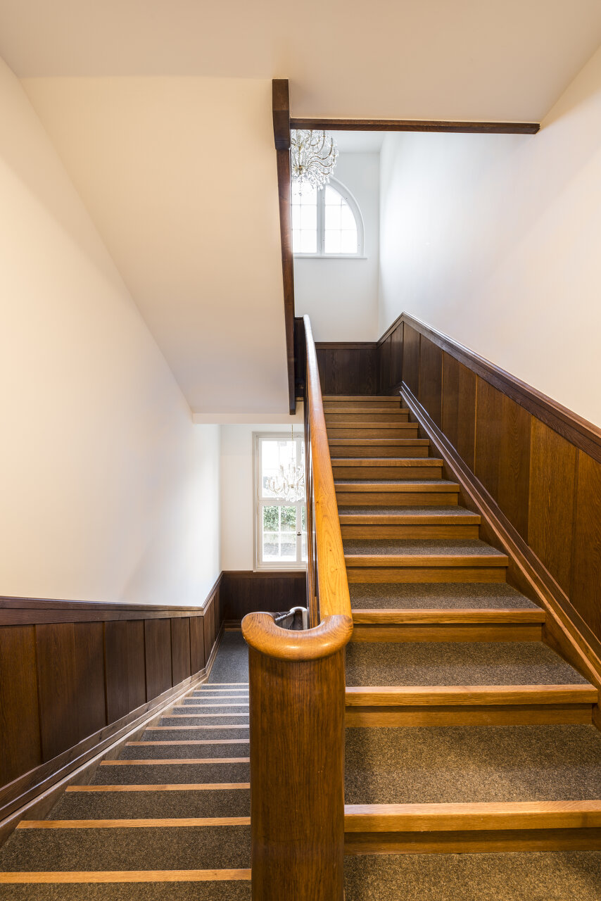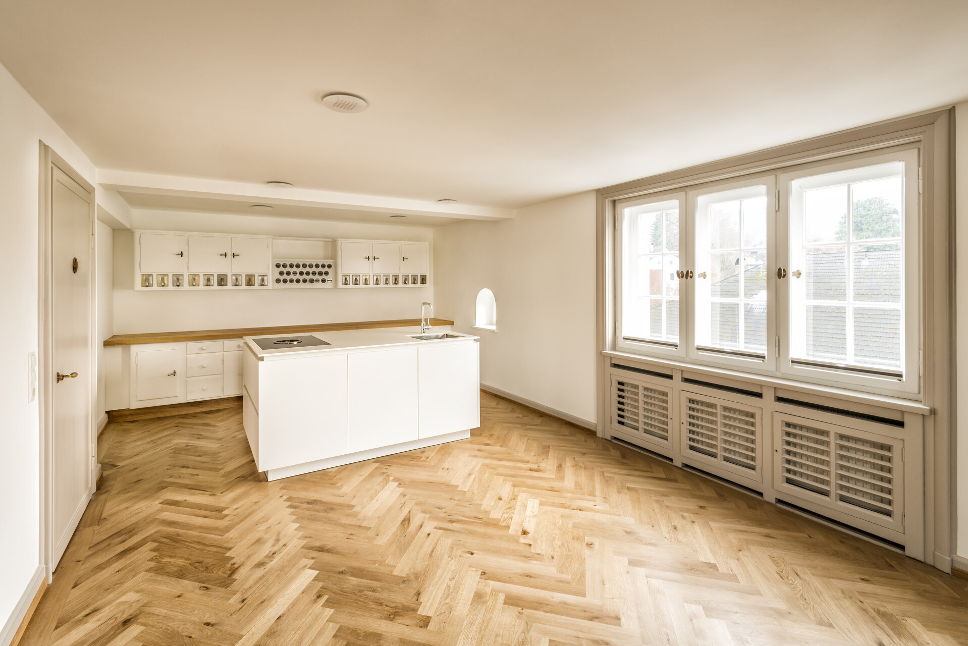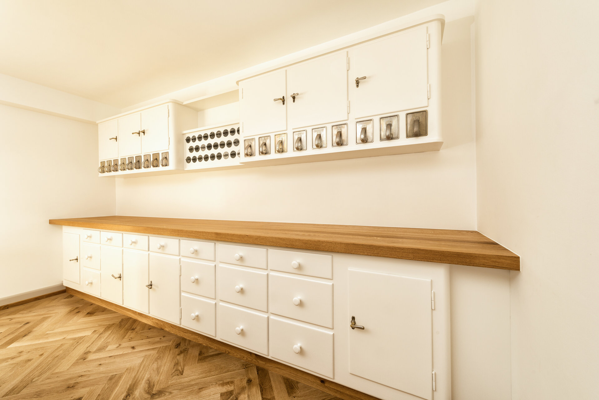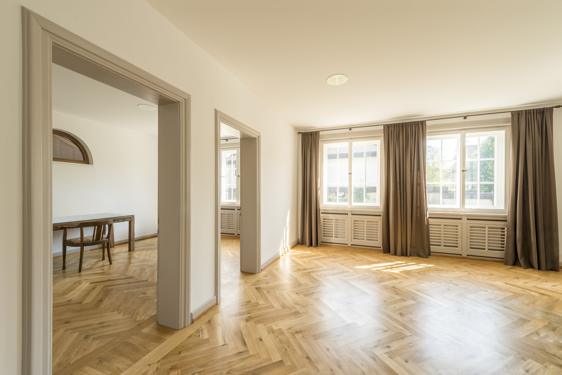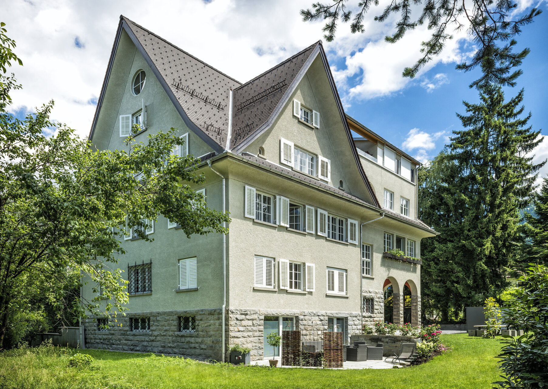 Dach und Außenwandflächen des Baudenkmals blieben bei der 2016 erfolgten Sanierung gemäß den Auflagen des Denkmalamts weitgehend unverändert. Zahlreiche originäre Fenster wurden erhalten und renoviert. Innen wurde das ursprünglich von der Familie bewohnte Gebäude im Zuge der Sanierung in sieben einzelne Mietwohnungen aufgeteilt. Die Einheiten werden über einen neu installierten Lift im Gebäudekern vertikal erschlossen. Der mächtige Baukörper nimmt nun im Erdgeschoß eine Drei-Zimmer-Gartenwohnung auf, über der im ersten Obergeschoß eine Arztpraxis angeordnet ist. Im zweiten und dritten Obergeschoß sind jeweils zwei Wohneinheiten untergebracht. Darüber wurde eine anderthalbstöckige Dachgeschoßwohnung mit Galerie realisiert. (Text: Architekten, bearbeitet)