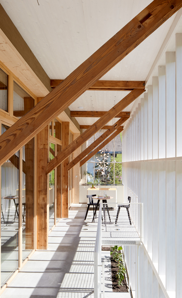 Dass mit dem Vorhandenen respektvoll und effektiv umgegangen wurde, zeigt sich deutlich im ehemaligen Maschinenlager, das zum Wintergarten umfunktioniert wurde. Unsichtbar ist hingegen die frühere Jauchegrube, deren Volumen nun als Eisspeicher zum fossilfreien Heizen und Kühlen des Gebäudes genutzt wird. (Text: Architekt, bearbeitet)