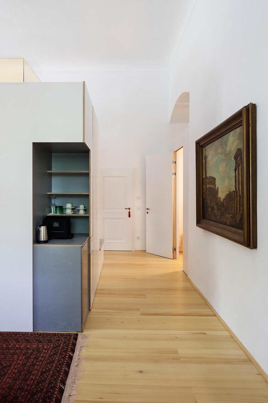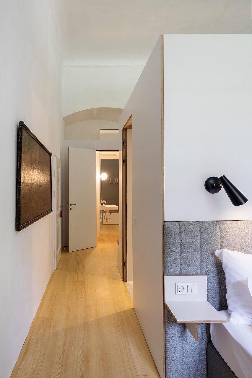 Wir wollen bewusst gängige „Hotelkonzepte“ vermeiden, weil wir der Meinung sind, dass diese singulären Räumlichkeiten ein handwerkliches Arbeiten als Antwort erfordern, das den glatten und glänzenden Oberflächen aktueller, modischer Trends zuwiderlaufen muss. (Text: Architekten, bearbeitet)