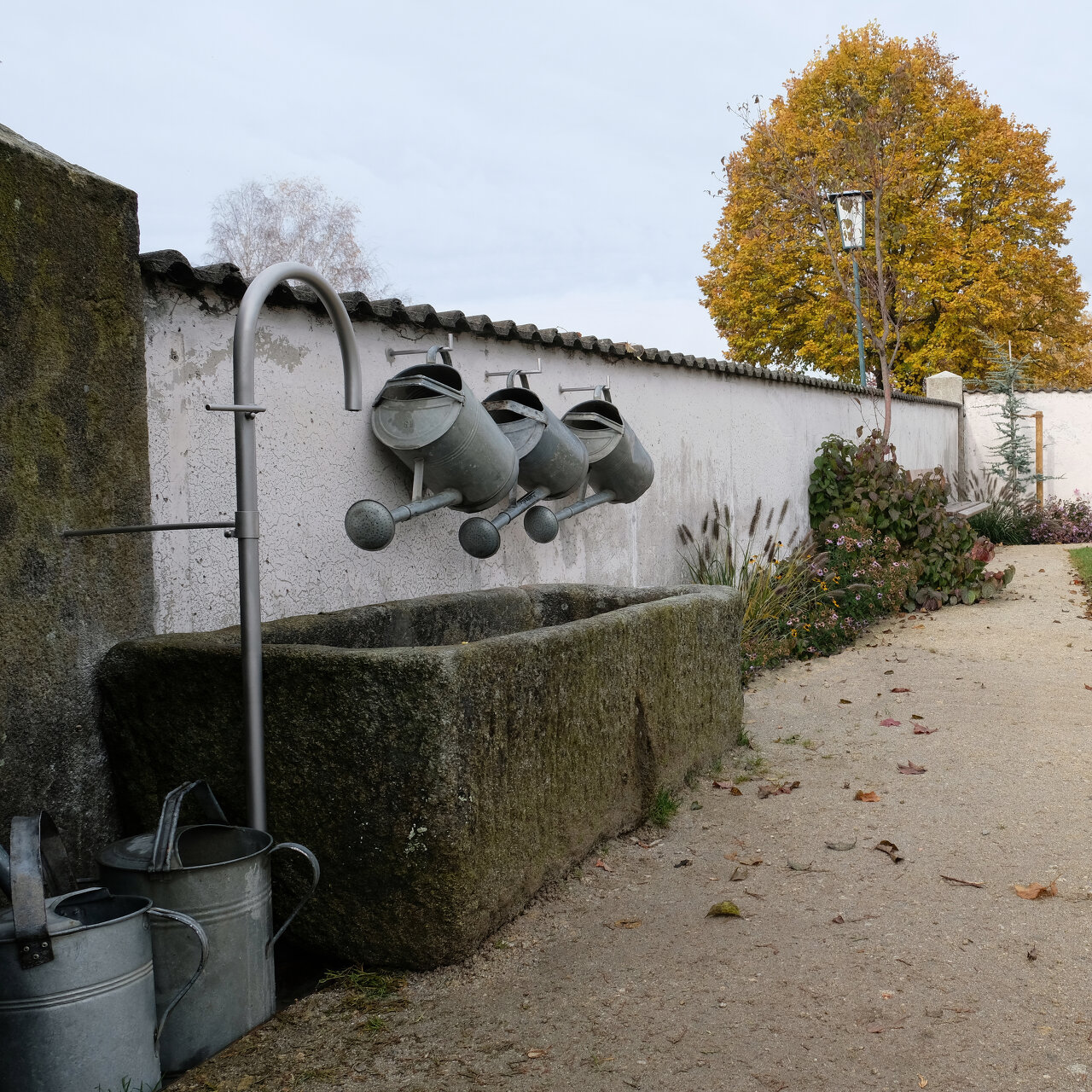 Umgesetzt in sandgestrahltem Beton, Messing und Granitkies, fügen sich Gedenkort und Gräber in den landschaftlichen Rahmen des Bestands. Mit neuer Brunnenausstattung, jahreszeitlich abgestimmter Bepflanzung und ergänzenden Wegen entlang der Außenmauern zeigt sich der ergänzende Friedhofsbereich als stimmungsvoller „Urnengarten“. (Text: Architekt:innen)
