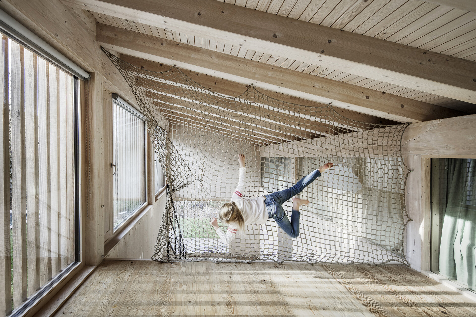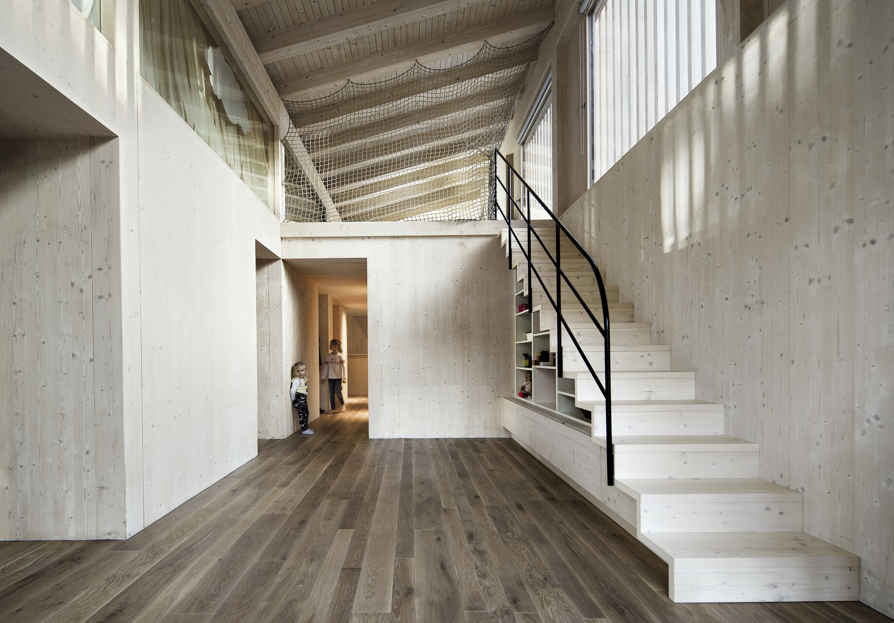 Das geforderte Raumprogramm und die daraus resultierende Kubatur ergeben zwei Ebenen mit zusätzlich ausgebautem Dachraum – jedes Kinderzimmer profitiert vom Luxus einer eigenen Galerieebene.