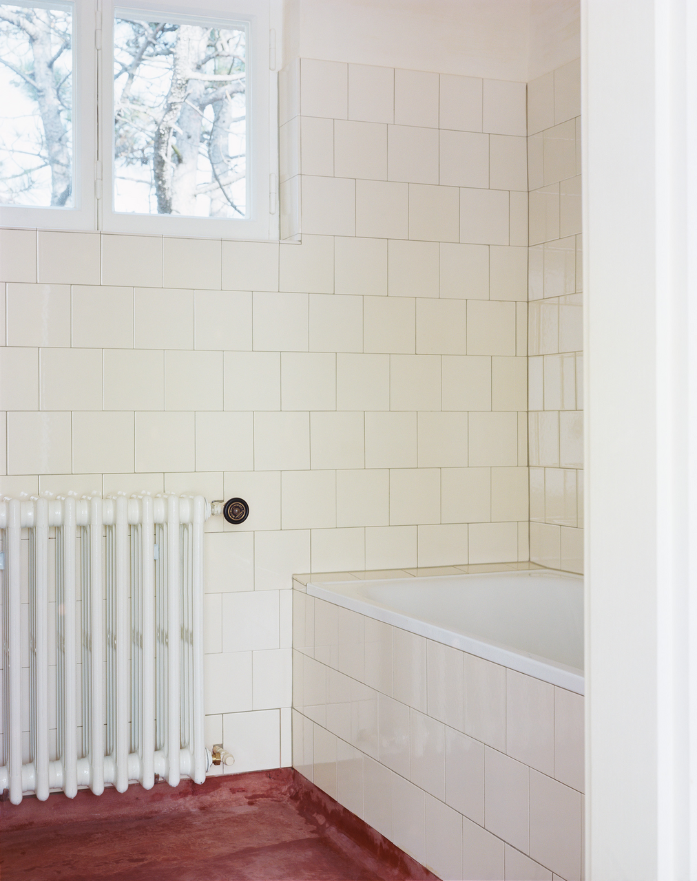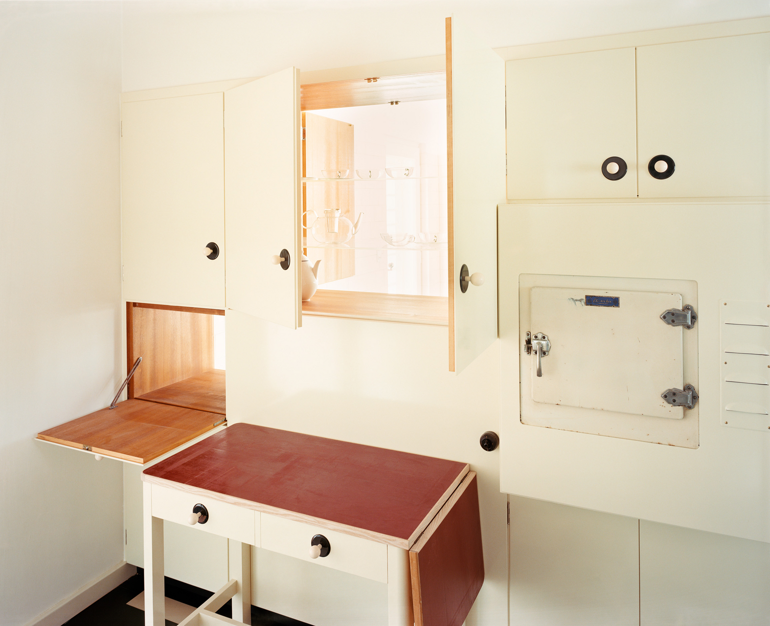 Die Rolle der Architektenteams ist essenziell, denn Parameter wie Barrierefreiheit, Fluchtwege, Statik, Haustechnik, Brandschutz sind kaum verhandelbar. Der CMP umfasst auch die künftige Erhaltung und Vermittlung des Denkmals, er ist quasi ein Wartungsbuch. Das Bundesdenkmalamt subventionierte ebenso die wissenschaftliche Untersuchung von Bauhistorie, Putz, Stein, Beton, Holz und Metall. Restauratorin Claudia Riff-Podgorschek befundete die Wandflächen: Der originale Putz war beige-sandfarben. Die Vorstellung einer „weißen Moderne“ ist vor allem der Schwarz-Weiß-Fotografie ihrer Zeit geschuldet, die Villa Rezek trägt nun wieder Ocker. „Wir brachten den Kratzputz auf Kalkbasis in historischer Technik auf“, sagt Eisenköck, „ohne Zement, ohne Kunstharz, diese Wand atmet.“ Vollwärmeschutz gibt es keinen – dafür schlanke Vordächer. „Man kann so ein Haus nicht komplett einpacken, ein Oldtimer wird mit einem E-Motor auch nicht nachhaltiger.“ Details sind in der reduzierten Formensprache der Moderne besonders wichtig. Eisenköck untersucht und rekonstruiert sie akribisch. Die Steinbrüstung der Treppe, die sich so hochelegant von der Halle – mit Blick in den Wohnsalon und einem Richtungswechsel in den ersten Stock – windet, ist rekonstruiert. „Wie saniert man solche Details seriös? Man kann sich über Fotos mit Beschreibungstext oder das Studium anderer Objekte der Bauzeit annähern und je nach Priorität Rückschlüsse ziehen.“ Eisenköck hat viele Bauten besucht und ist einschlägig belesen. „Bei dieser Brüstung haben wir zwei Marmorplatten im Fuchsbau des Gartens gefunden. Dank der Löcher der Schrauben, mit denen der Metallkorb für die Pflanzen befestigt war, konnten wir sie richtig zuordnen.“ Die Villa Rezek war oft publiziert: Die britische Kunstzeitschrift „The Studio“ brachte 1936 einen Beitrag mit Fotos von Franz Mayer, die auch das Innere zeigten. Materialien, Farben, Möbel, alles war genau beschrieben. So erfuhr man, dass Schmutzwäsche durch Rohre von den oberen Etagen in die Wäscherei befördert wurde und Sonnenterrassen mit Duschen ausgestattet waren.