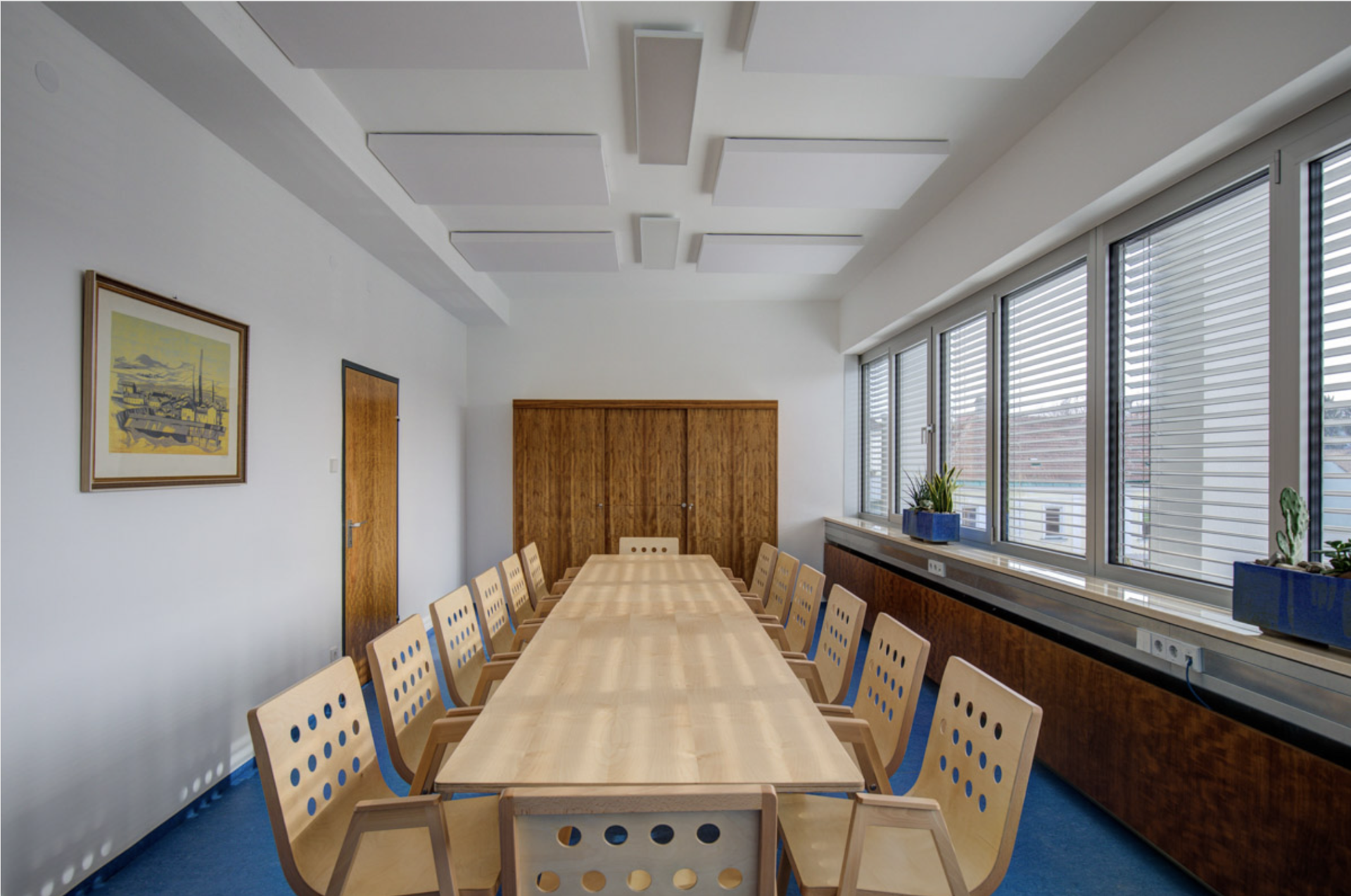 Für den Aus- und Umbau des Rathauses wurden zu Beginn der Planung mehrere Szenarien gegenübergestellt und diskutiert: vom vollständigen Neubau, über die weitgehende Entkernung bis hin zur großen beziehungsweise sanften Sanierung. Letztere konnte schließlich überzeugen – durch kurze Bauzeit, kostengünstige Umsetzung, Stärkung der bestehenden Vorzüge und Beibehaltung der Identität, die diesem Haus über die 50 Jahre seines Bestehens erwachsen ist. Die nachhaltige „sanfte“ Sanierung baut auf dem Konzept der 1970er Jahre auf und ergänzt die Originalsubstanz ohne deren Räume und Anmutung in Materialität und Proportion zu schmälern. Dies beinhaltet neben der selbstverständlichen barrierefreien Erschließung, die konsequente Dämmung, die Erneuerung der haustechnischen Anlagen sowie ein neues räumliches Verständnis einer kommunalen Verwaltung.