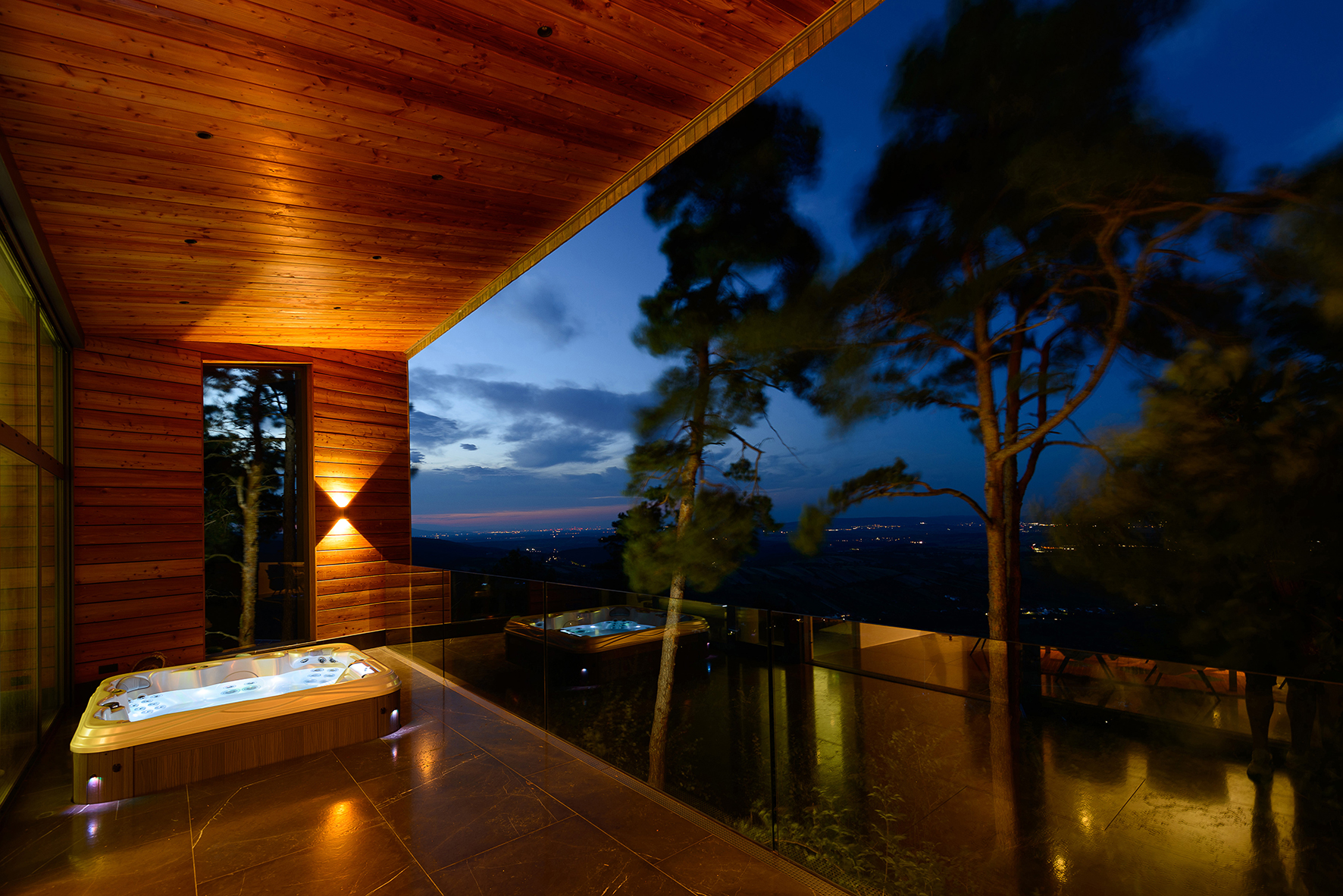Auf dem Sockel, dem Zugang und dem Einlagerungsbereich entsteht eine fliegende Plattform“ mit zwei konischen Volumen. Das nach Westen orientierte Volumen streckt sich in der vertikalen Achse, um sich der Abendsonne zu öffnen. Das nach Osten orientierte Volumen streckt sich in senkrechter und horizontaler Achse und schafft den wunderschönen Talblick.