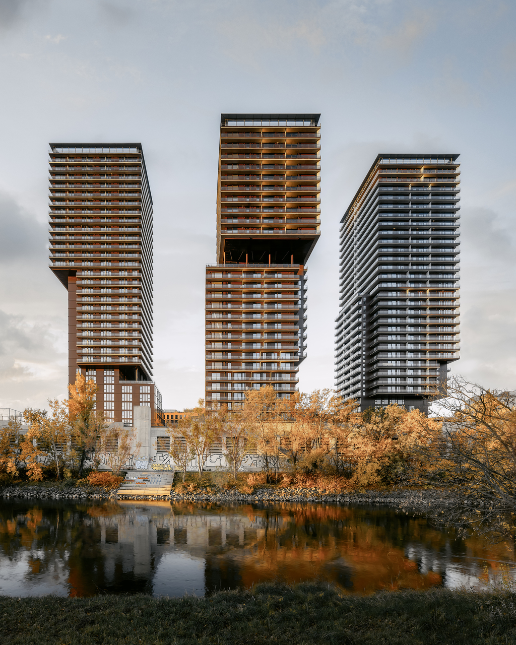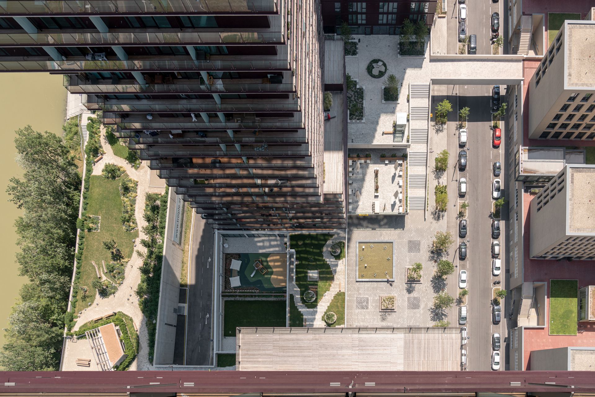 Die differenziert gestalteten öffentlich zugänglichen Außenräume, die hoch gelegenen Gemeinschaftsterrassen und flexible, nutzungsoffene Gemeinschaftsbereiche mit hoher kommunikativer Qualität innerhalb des Gebäudes bilden Grundlage und Hintergrund für vielfältige Freizeitaktivitäten. Durch Begegnung und Kommunikation der Anwohner kann Identität und ein Gemeinschaftsgefühl entstehen und somit die Anonymität von Wohnhochhäusern aufgebrochen werden.