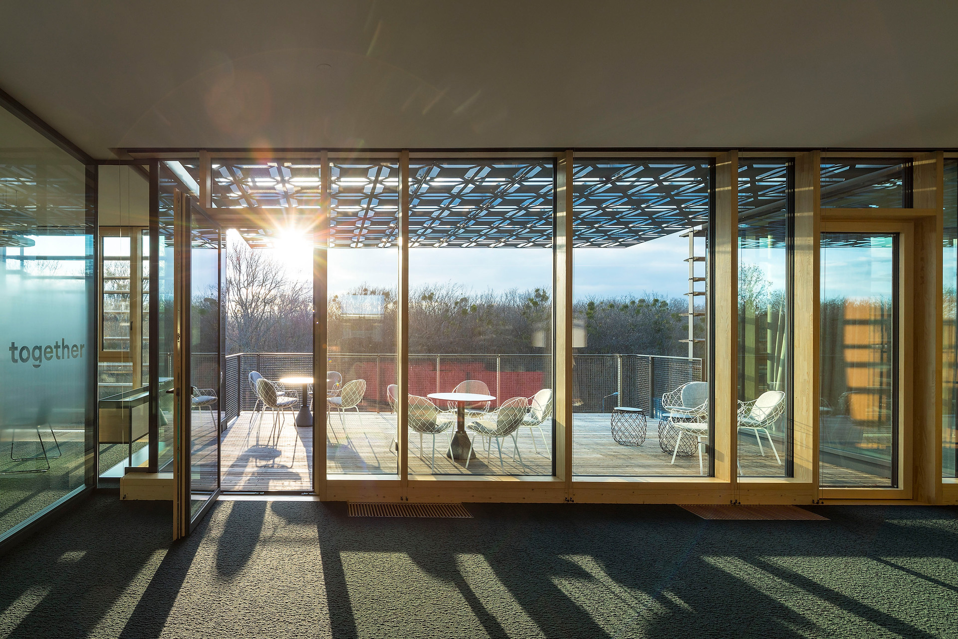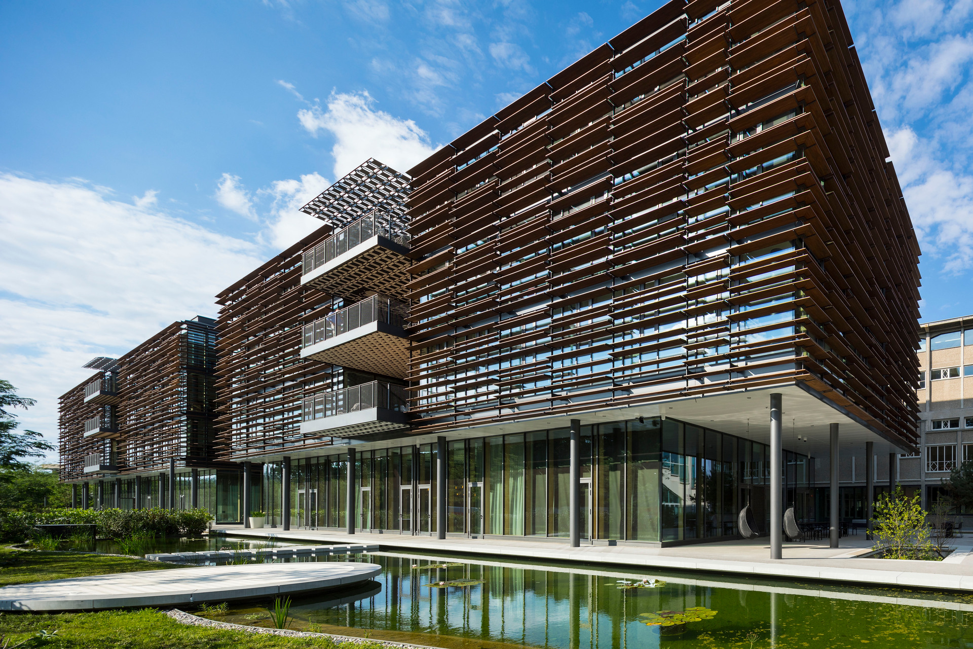 Nur durch wenige pfannkuchenstapelartige Stadtvillen getrennt, sind hier nahe der neuen Wirtschaftsuniversität mit ihren Bauten von Zaha Hadid, Hitoshi Abe, Carme Pinós u.a. moderne Bürogebäude entstanden. Sie sind zweigeteilt, mit den revitalisierten Tribünen zur Rennbahn hin und im Abstand von acht Metern parallel geführten Neubauten zum Prater hin. Diese wiederum korrespondieren mit ihrem lebendig wirkenden Holzlamellenkleid als Sonnenschutz mit der umgebenden Kultur-Natur-Landschaft.