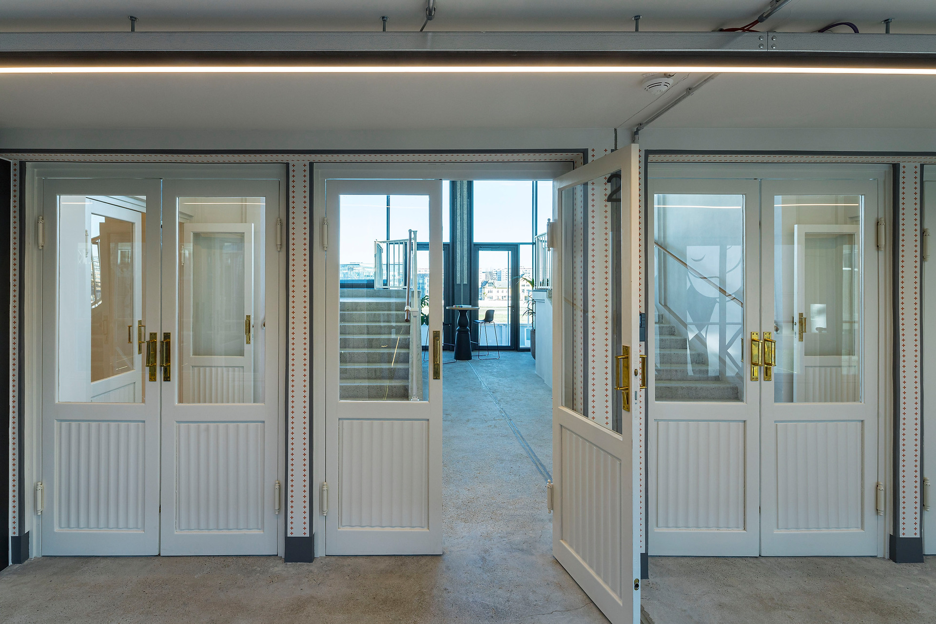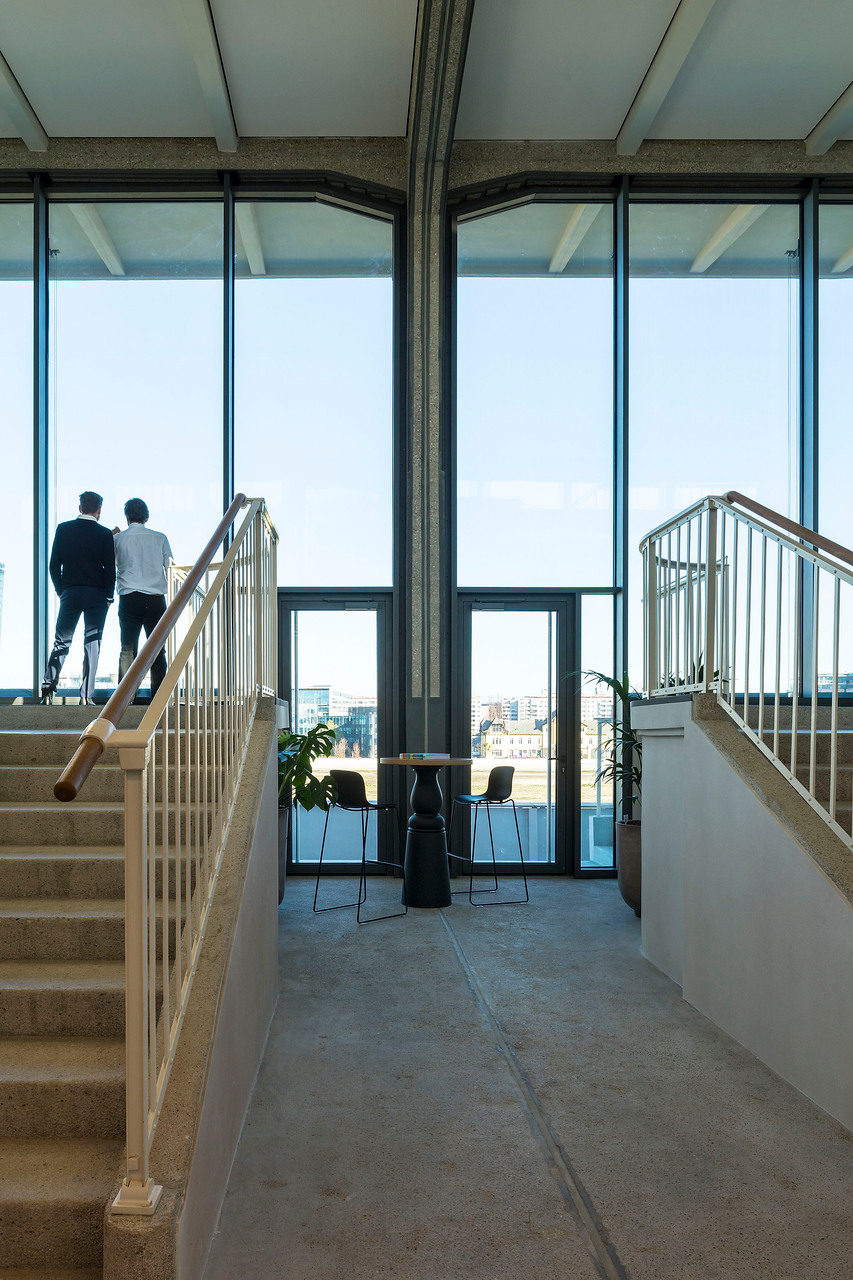 Im Vorfeld der Planung wurden die Kernprozesse des Immobilienentwicklers analysiert und die Zonierung und Räume entsprechend gestaltet. Spezielle Bedürfnisse aus den unterschiedlichen Tätigkeiten aller Nutzer wurden umgesetzt, Arbeitslandschaften generiert, als ideales Umfeld für die unterschiedlichen Aktivitäten, mit möglichst fließenden Übergängen zwischen Alt- und Neubau wie auch zwischen Innen und Außen.