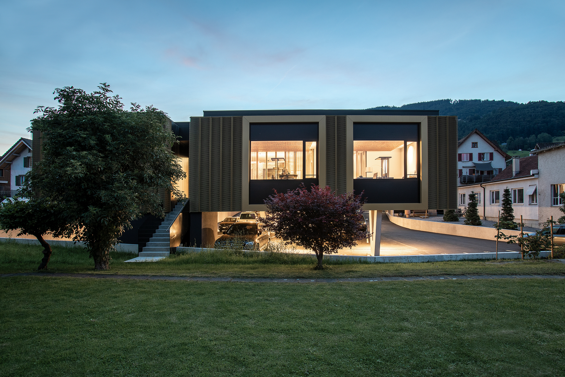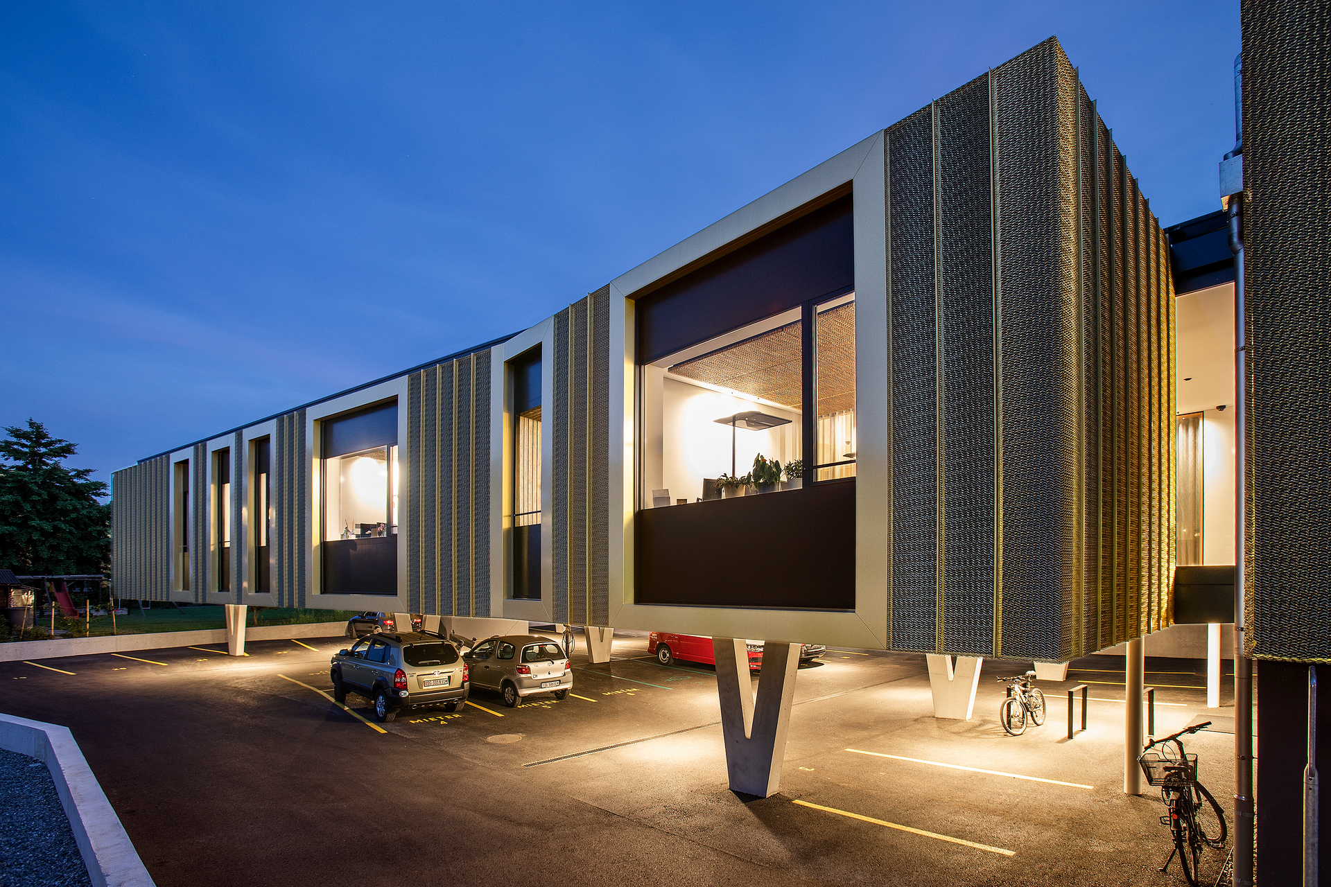 Stahl-Glaskonstruktion, Stahlbeton, Vermeidung von PVC für Fenster, Türen, Vermeidung von PVC im Innenausbau