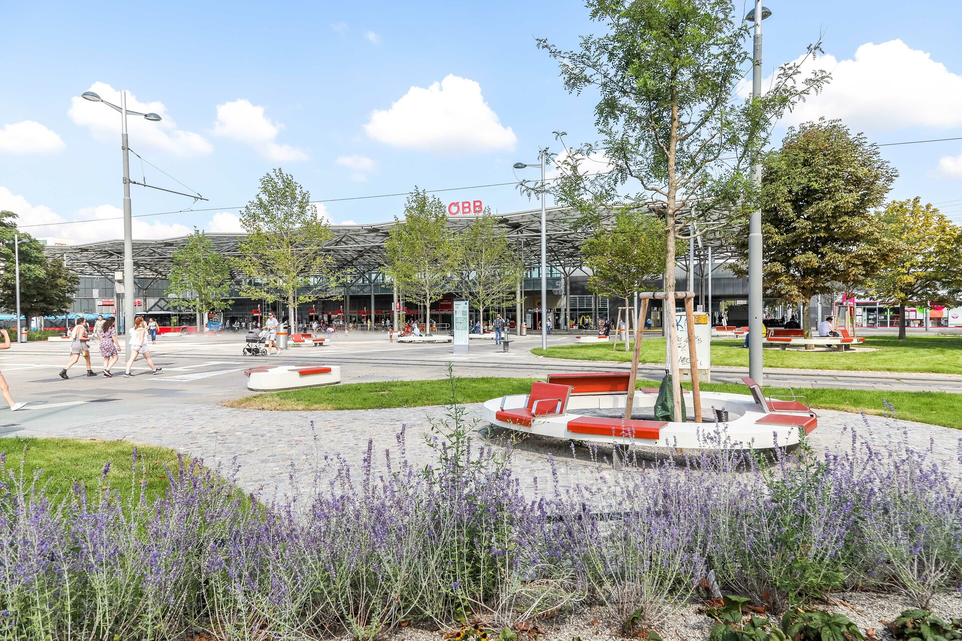 KENH Architekten nahmen am zweistufigen Realisierungsverfahren teil und holten sich aus strategischen Gründen das Wiener Landschaftsplanungsbüro DD mit an Bord, schließlich haben Anna Detzlhofer und Sabine Dessovic mit öffentlichen Auftraggeber:innen und Projekten im öffentlichen Raum schon mehr als reichlich Erfahrung. Mit insgesamt 40 »Interventionen«, die punktuell ansetzen, ohne den bestehenden Platz komplett auf den Kopf zu stellen, belegte die Arbeitsgemeinschaft den 1. Platz. Im Herbst 2021 starteten die Bauarbeiten, im Sommer darauf wurden die letzten Arbeiten fertiggestellt.