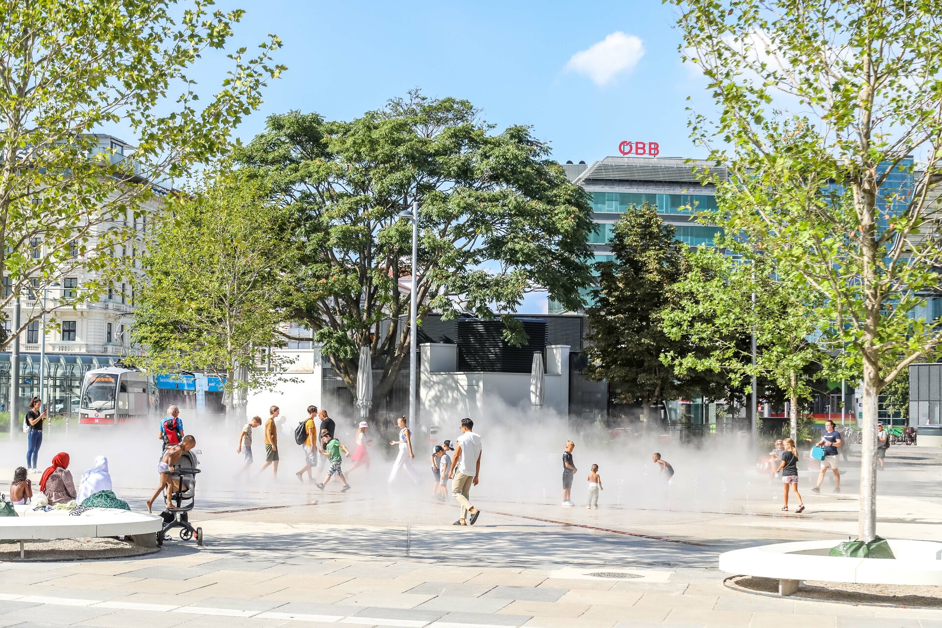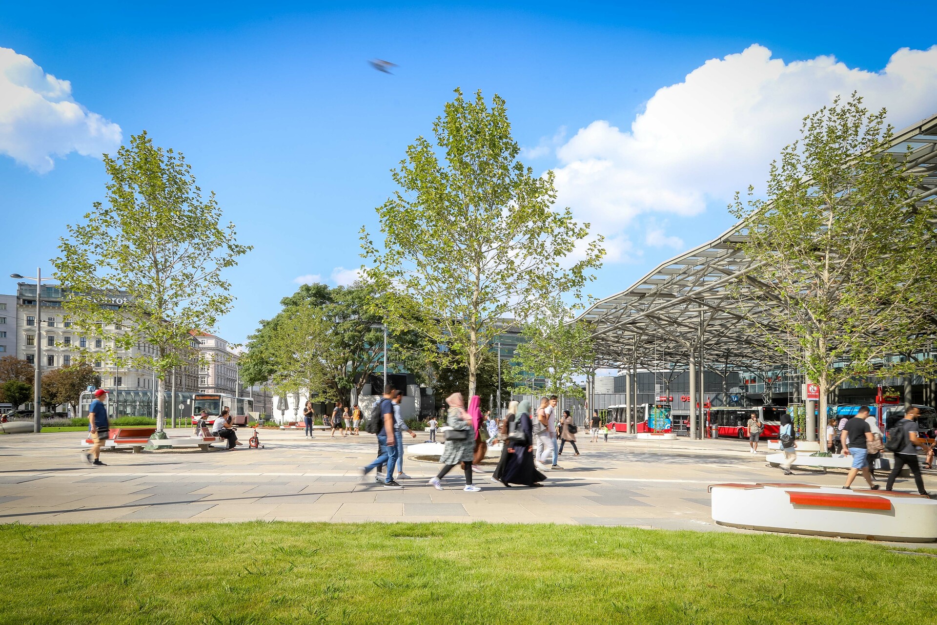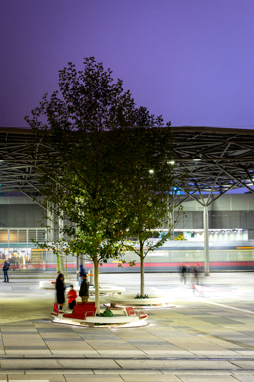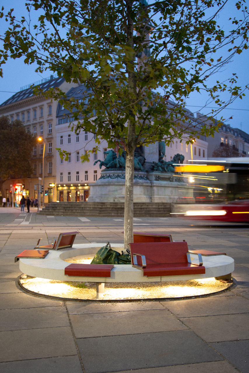 »Und das war alles andere als einfach«, so Dessovic. »Wir sind den gesamten Platz mit dem ober- und unterirdischen Leitungs- und Installationsplan abgegangen, der aussieht wie ein wilder Spaghetti-Teller, und ich kann mit bestem Gewissen sagen: Es gibt heute keinen einzigen Quadratmeter mehr, an dem man noch einen weiteren Baum pflanzen könnte. Alle Reserven sind ausgeschöpft, mehr geht nicht mehr.« Schon jetzt ist die subjektiv gefühlte Temperatur im Hochsommer, wie Studien ergeben haben, um 10 bis 15 Grad Celcius kühler als die tatsächliche Umgebungstemperatur.