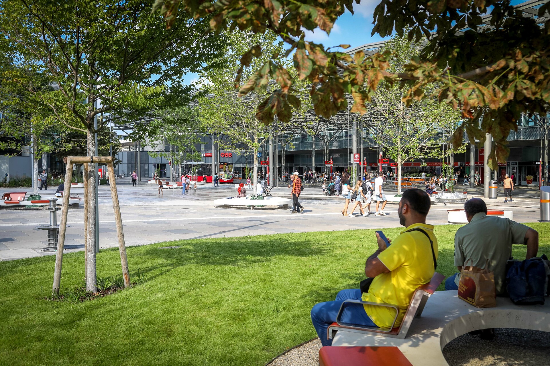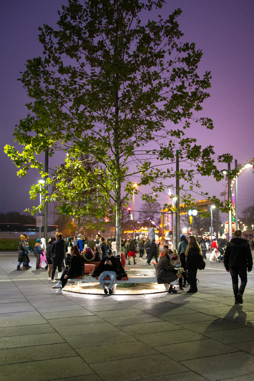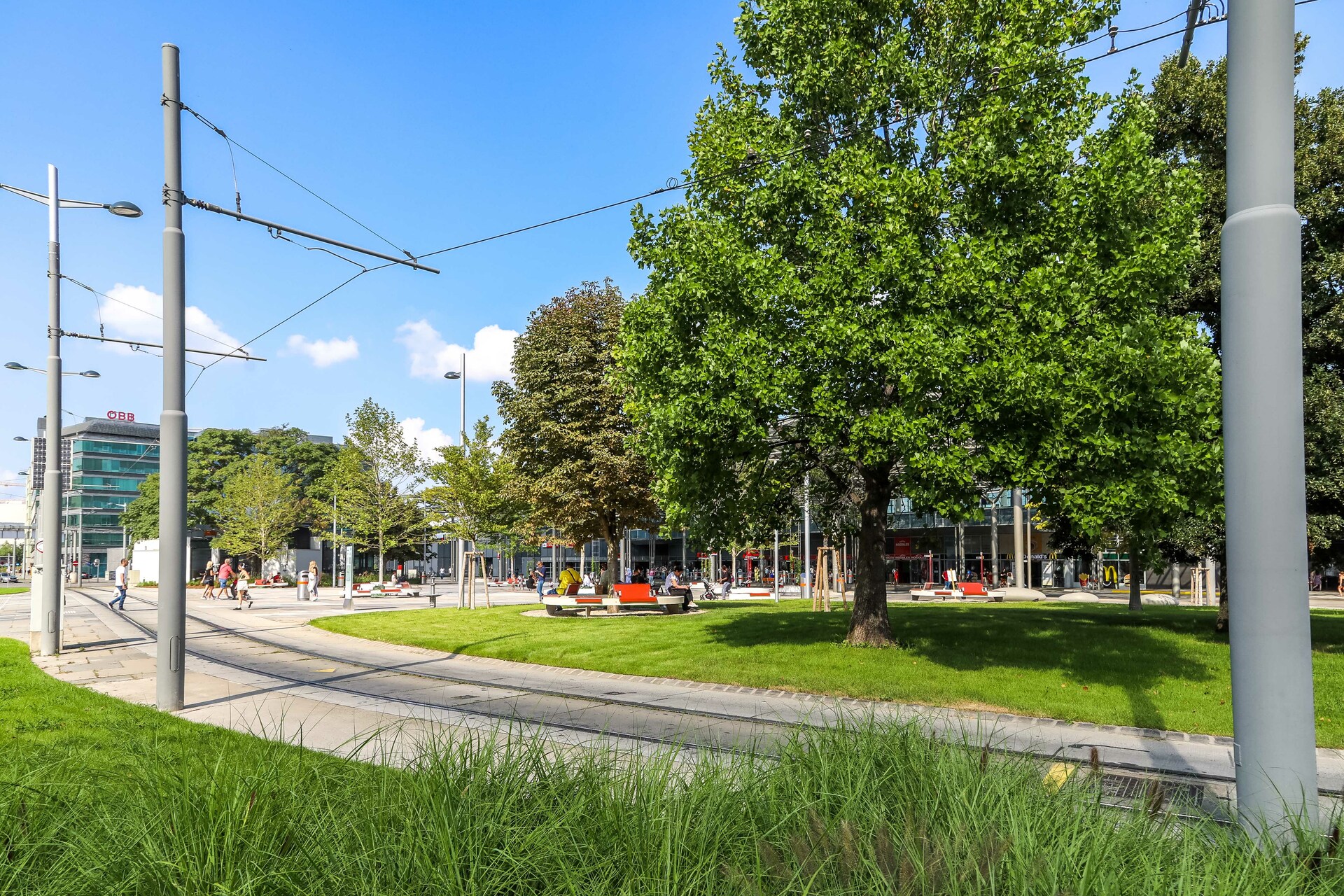 »Und das war alles andere als einfach«, so Dessovic. »Wir sind den gesamten Platz mit dem ober- und unterirdischen Leitungs- und Installationsplan abgegangen, der aussieht wie ein wilder Spaghetti-Teller, und ich kann mit bestem Gewissen sagen: Es gibt heute keinen einzigen Quadratmeter mehr, an dem man noch einen weiteren Baum pflanzen könnte. Alle Reserven sind ausgeschöpft, mehr geht nicht mehr.« Schon jetzt ist die subjektiv gefühlte Temperatur im Hochsommer, wie Studien ergeben haben, um 10 bis 15 Grad Celcius kühler als die tatsächliche Umgebungstemperatur.