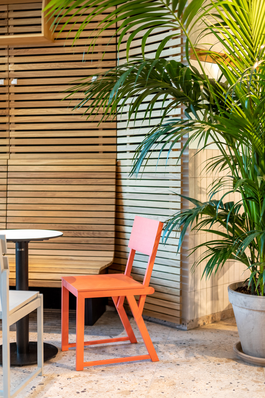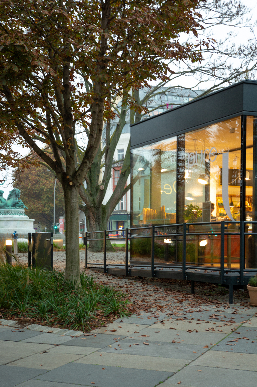 »Als 2014 klar wurde, dass die lokale Polizeistation von hier wegzieht und die alte Wachstube mitten am Platz frei wird«, erzählt Eric-Emanuel Tschaikner, CEO von KENH Architekten, »wurden wir eingeladen, für einen Gastronomen das Haus umzubauen, ein gestalterisches Konzept zu entwickeln und den unmittelbaren Freiraum rund um das Gebäude mitzuplanen.« Mit Erfolg. Der Gastronom pachtete das in den 1980er-Jahren errichtete Polizeihäuschen und startete mit den Planungen.