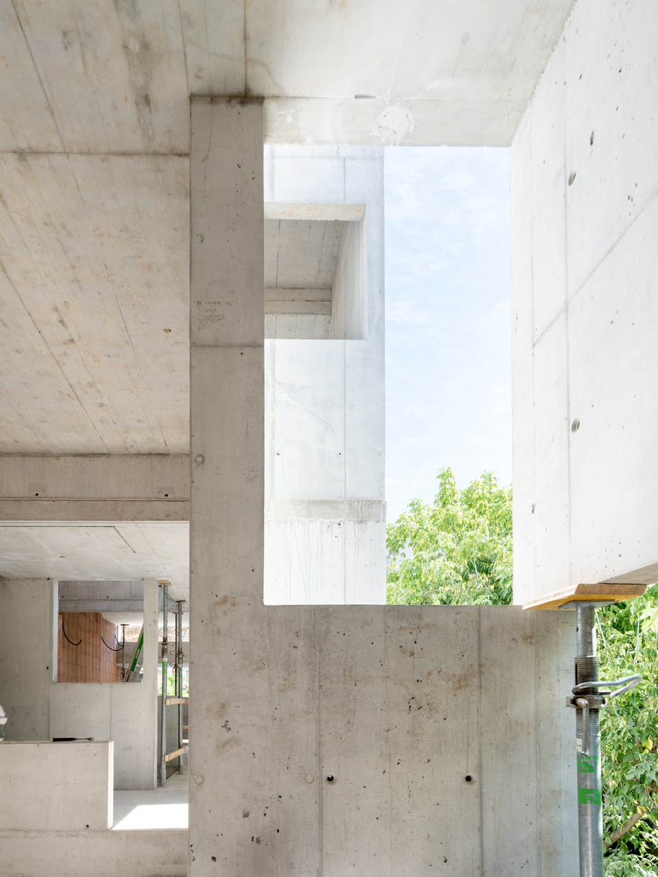 Der zur Disposition stehende eingeschoßige Lagertrakt stellte sich als Ergänzung aus der Zwischenkriegszeit heraus, das einfache Ziegelmauerwerk als untauglich, um weitere Belastungen aufzunehmen. Ein Neubau war also möglich. Das beauftragte Architektenduo Lilli Pschill und Ali Seghatoleslami (PSLA Architekten) legte seinen Entwurf mit Bedacht auf die bestehende Stadtstruktur an und mit dem Ziel, Flächen zu entsiegeln, um das Mikroklima zu verbessern.