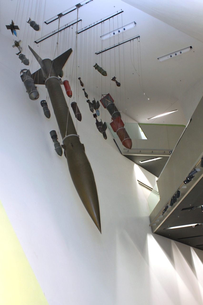 Man könnte sagen: Der Blitz hat in das Militärmuseum eingeschlagen, der V-förmige Neubau weist in die Innenstadt, wo 1945 alliierte Bomber ihr Zerstörungswerk anrichteten.