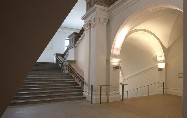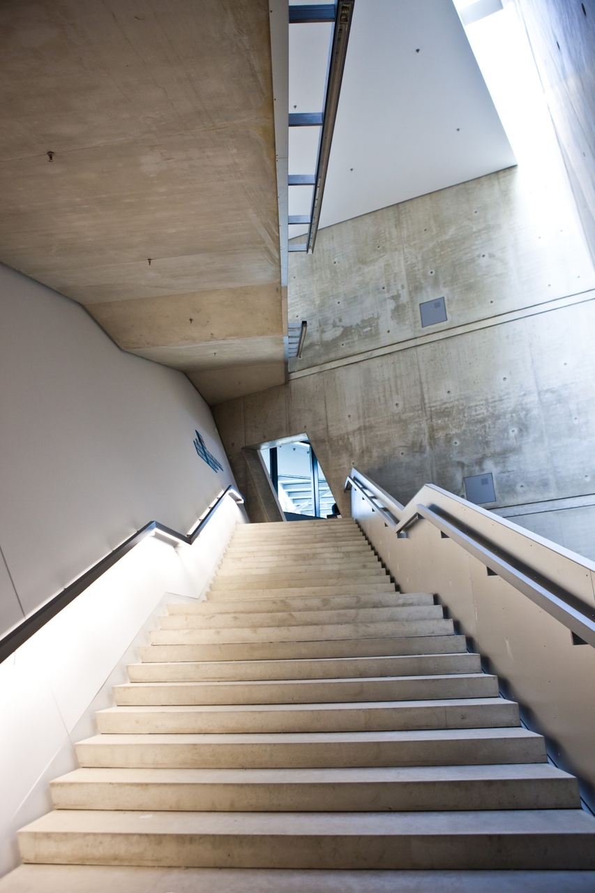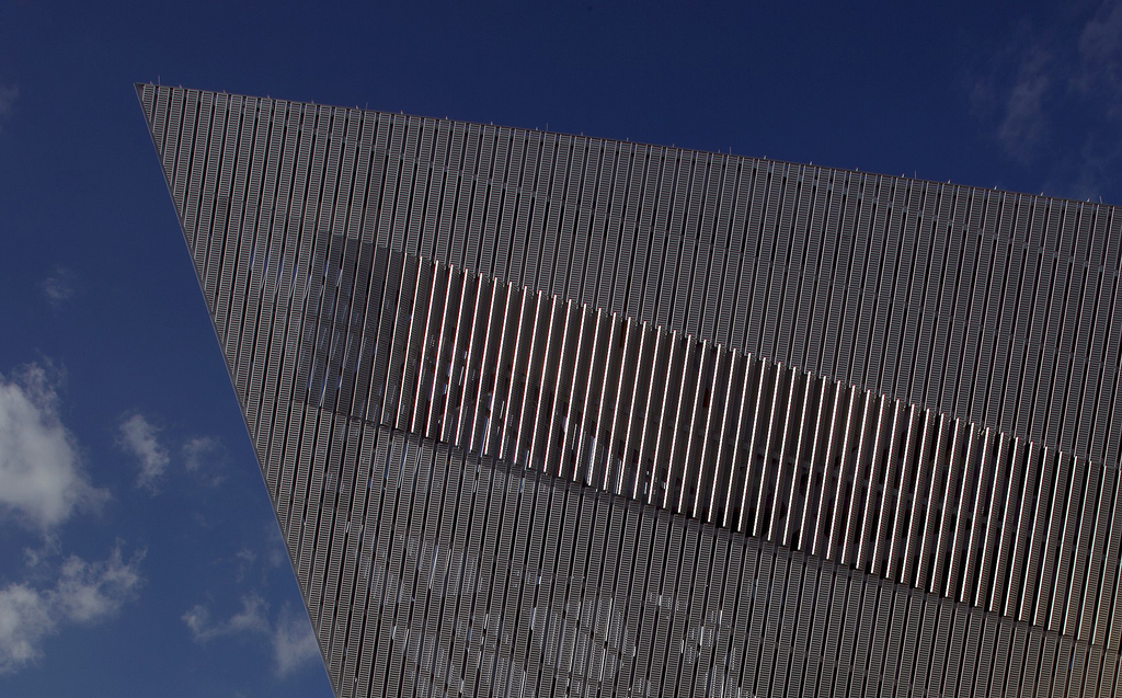 Dafür hat der US-Architekt die für ihn so typischen (Ausstellungs-)Räume entworfen: Es gibt keinen Mittelpunkt, keine zentrale Fläche, um die sich alles gruppiert. Stattdessen findet man überall Verwinkelungen, große asymmetrische Fensterfronten. Hinter jeder Wand eröffnet sich eine neue Perspektive. Mächtige Steinsäulen und wuchtige Gewölbe prallen auf schräge Betonwände, stumpfe Winkel und gekippte Böden, auf denen man das Gefühl hat umzustürzen. Am höchsten Punkt des gläsernen Keils gibt eine Besucherterrasse den Blick auf die berühmte Frauenkirche, den Zwinger und die Semperoper frei. Nachts wird das Museum durch eine spektakuläre Illumination in Szene gesetzt. Am Tag überlagern Metalllamellen die transparente Glasfassade.