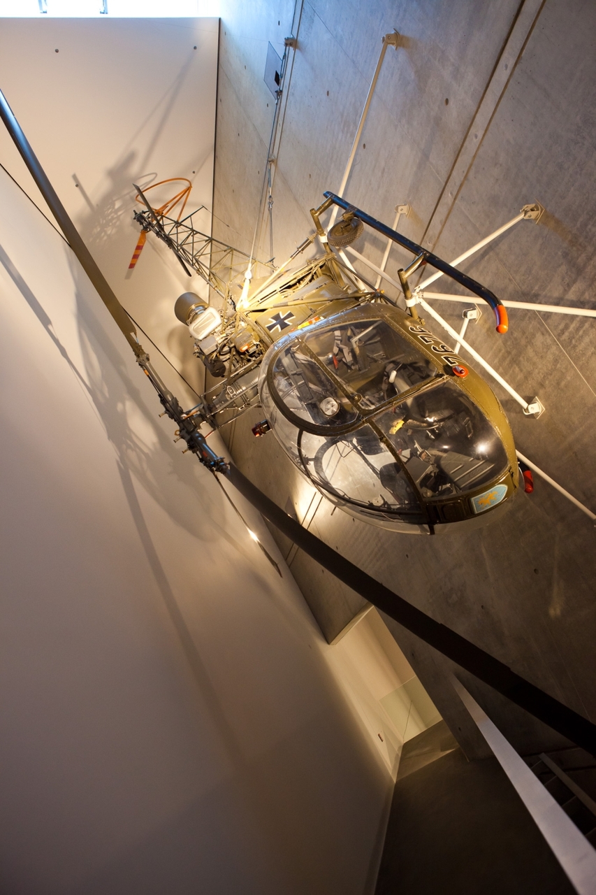 Nach dem Eingangsbereich können die Besucher dann mit einem Fahrstuhl bis unter das Dach des Gebäudes fahren. Von dort geht es ähnlich wie im New Yorker Guggenheim-Museum auf einem gewundenen Vitrinenparcours hinunter. Er gliedert sich in Themen wie „Krieg und Gedächtnis“, „Tiere beim Militär“, „Leiden am Krieg“, „Schutz und Zerstörung“. Die Bundeswehr will sich als moderne Institution präsentieren, die sich selbst reflektiert. Ist der Mensch böse? Gibt es gerechte Kriege? Wie entsteht Gewalt? Mit diesen Fragen werden die Besucher im Museum konfrontiert. Und Pieken wird nicht müde zu wiederholen: „Der Krieg ist nur die Spitze des Eisbergs“.