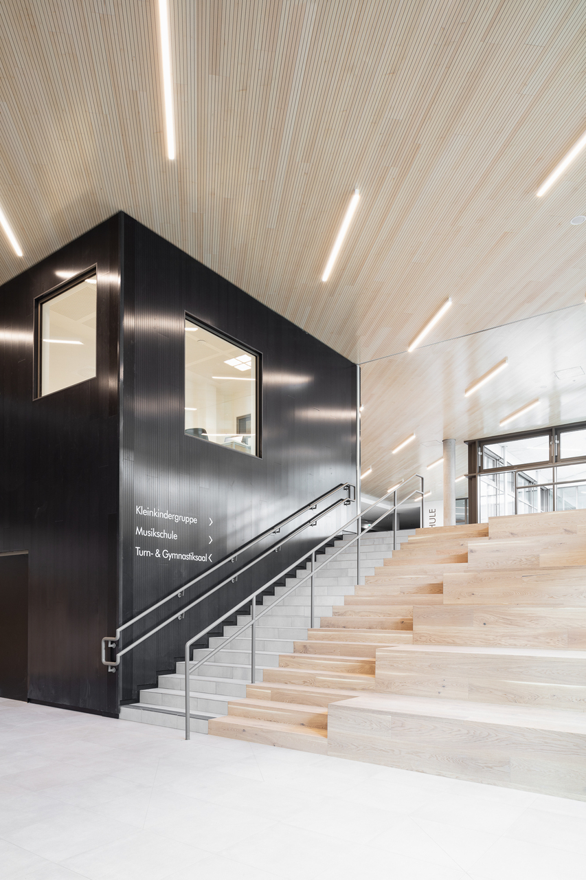 Der mit dem laufenden Schuljahr in Betrieb gegangene Campus Deutschordensstraße in Penzing ist das jüngste in einer Reihe von Campusprojekten, die durch ihre städtische Figur und eine Gebäudehöhe von bis zu fünf Geschoßen auffallen. Das Grundstück liegt nordseitig direkt an der Westbahn und südseitig an einem Grünzug, der parallel zur Bahn alte und neue Wohnhäuser verbindet. Die Architekten Misa Shibukawa und Raphael Eder setzen ihren Bau an die nordwestliche Ecke ihres Grundstücks und treppen ihn südseitig über vorgelagerte Terrassen ab. Dabei entsteht ein öffentlicher Vorplatz mit dem Haupteingang in den Campus, der in ein Foyer mit doppelter Raumhöhe führt. Von hier aus geht es über zwei Treppen, die jeweils einen Cluster erschließen, nach oben. Diese Treppen haben Aufenthalts- und Entdeckerqualität: Die Architekten haben angrenzend jeweils über zwei Geschoße reichende Lufträume implantiert, in denen Pflanzen nach oben wachsen.