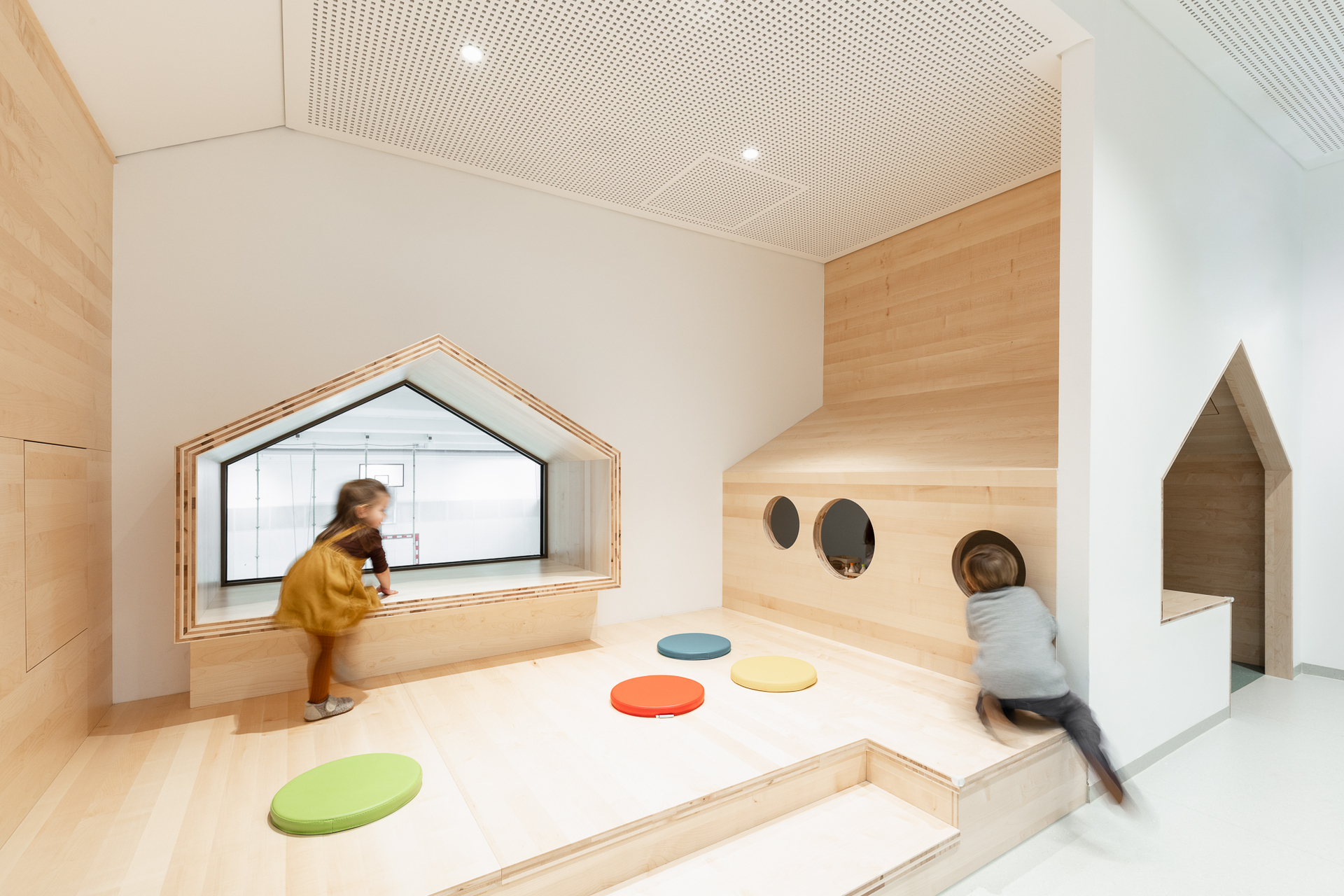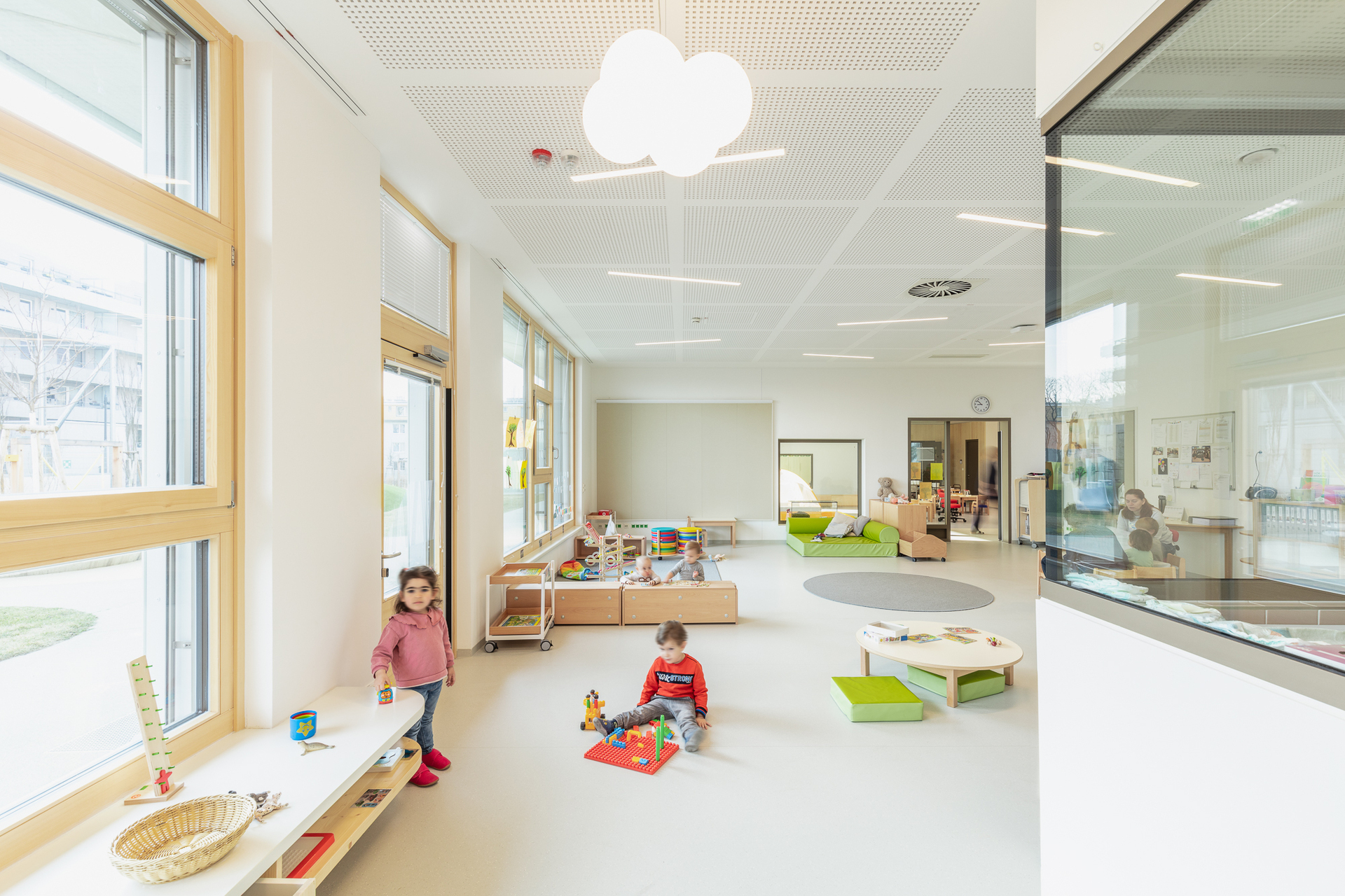Der Begriff „Infrastruktur“ kommt eigentlich aus dem militärischen Bereich und bezeichnet heute Einrichtungen, die im Hinter- und Untergrund für das Funktionieren einer Gesellschaft nötig sind. Schulen und Kindergärten in einen Topf mit Kanälen, Schnellstraßen und Brücken zu werfen ist aus architektonischer Sicht allerdings kein glücklicher Gedanke. Als wichtige soziale Einrichtungen sollten sie ja alles andere als im Hintergrund wirken – nämlich zu den schönsten und prägendsten Bauten eines Stadtteils gehören.