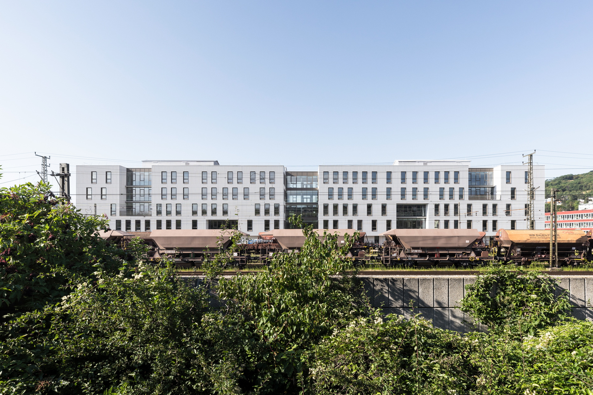 Zur Nordseite gibt sich das Campusgebäude mit schmalen Fensterschlitzen eher zugeknöpft. Dass die Bahngleise hier auf ewige Zeiten bestehen bleiben, ist allerdings nicht zu erwarten. Wahrscheinlich reichen hier wenige Gleise als Zubringer zum Westbahnhof, und dann wäre Platz für Visionen: ein Westpark auf der Strecke von Hütteldorf bis zum Gürtel, gemischt mit Wohnbebauung an den richtigen Stellen. Dann wird auch die neue soziale Infrastruktur nicht mehr ausreichen und um neue Campusstandorte ergänzt werden müssen.