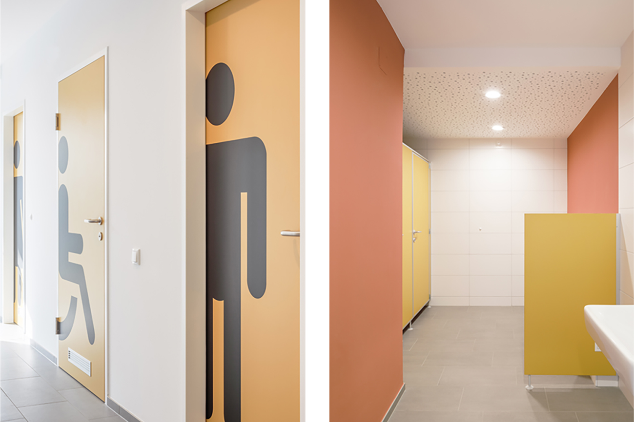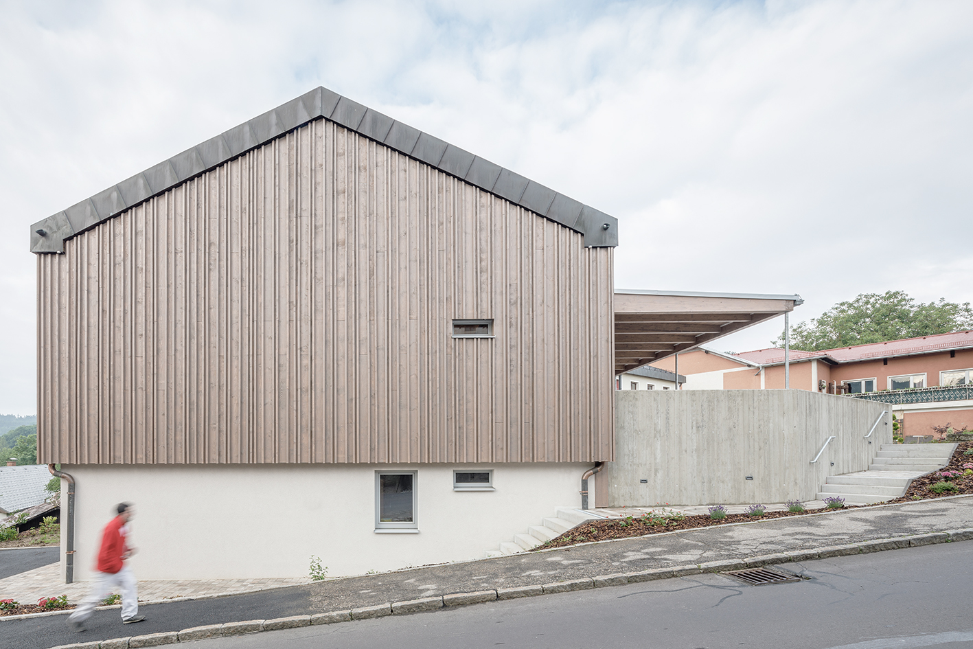 - Bestandsbauwerk weitgehend erhalten und saniert. Bei allen Maßnahmen wurde großes Augenmerk auf Nachhaltigkeit gelegt: Der Großteil der Dämmung besteht aus nachwachsenden Rohstoffen, die Fassade wurde als hinterlüftete Holzverkleidung ausgeführt.