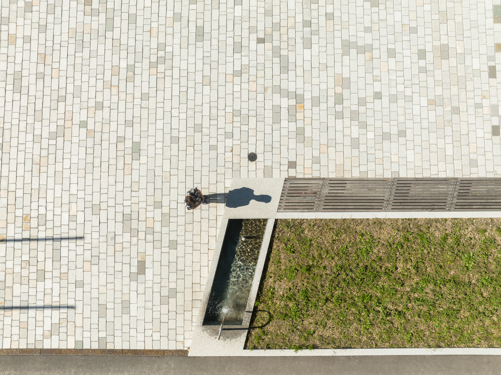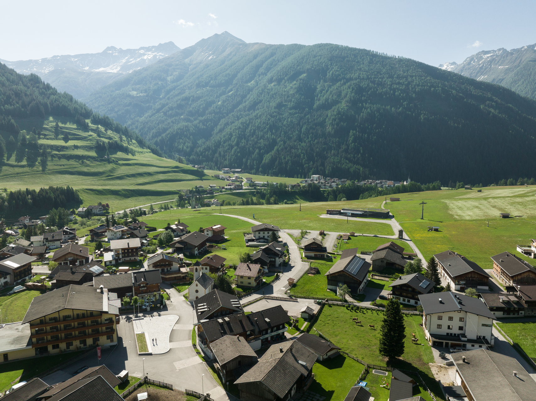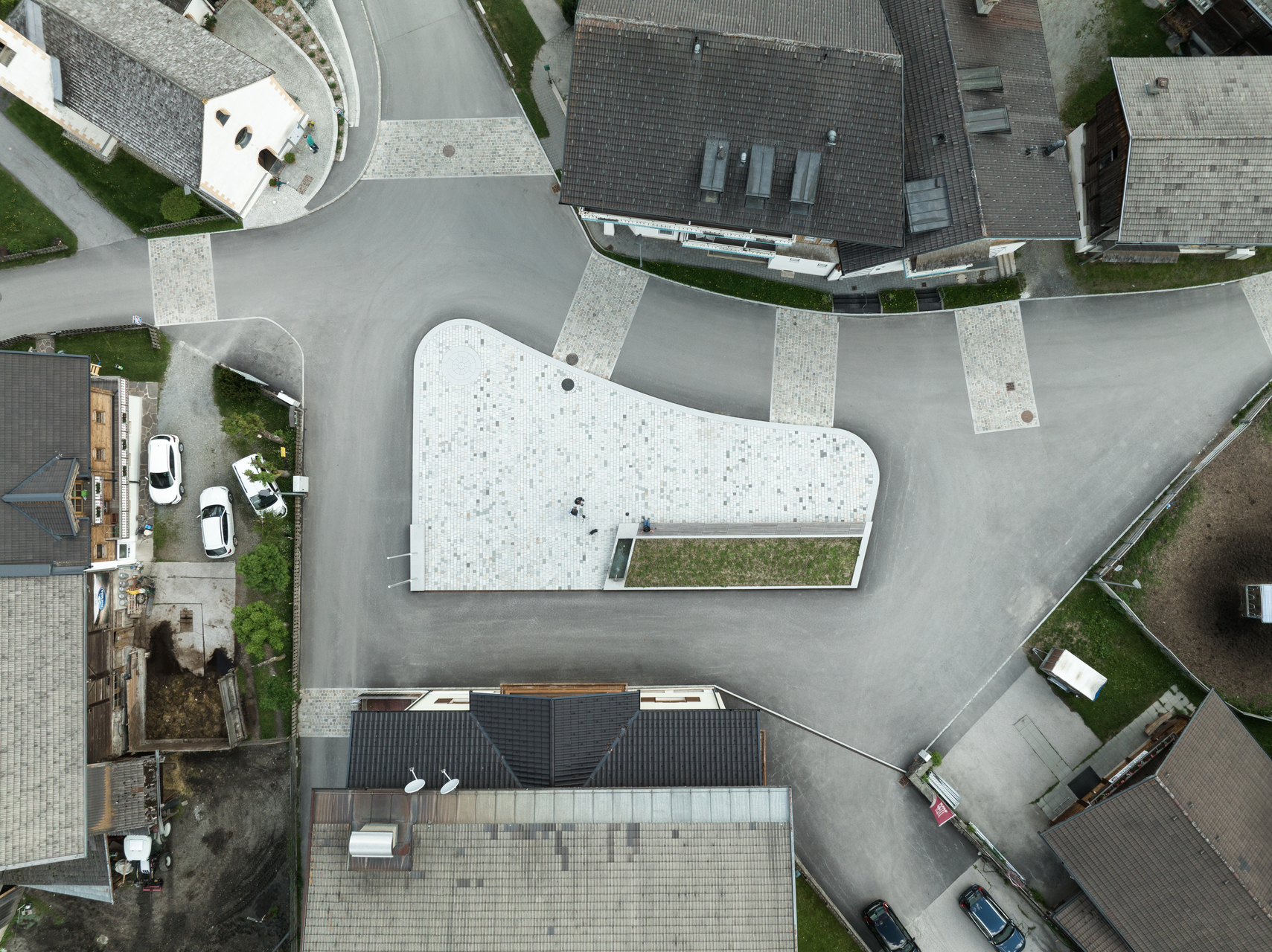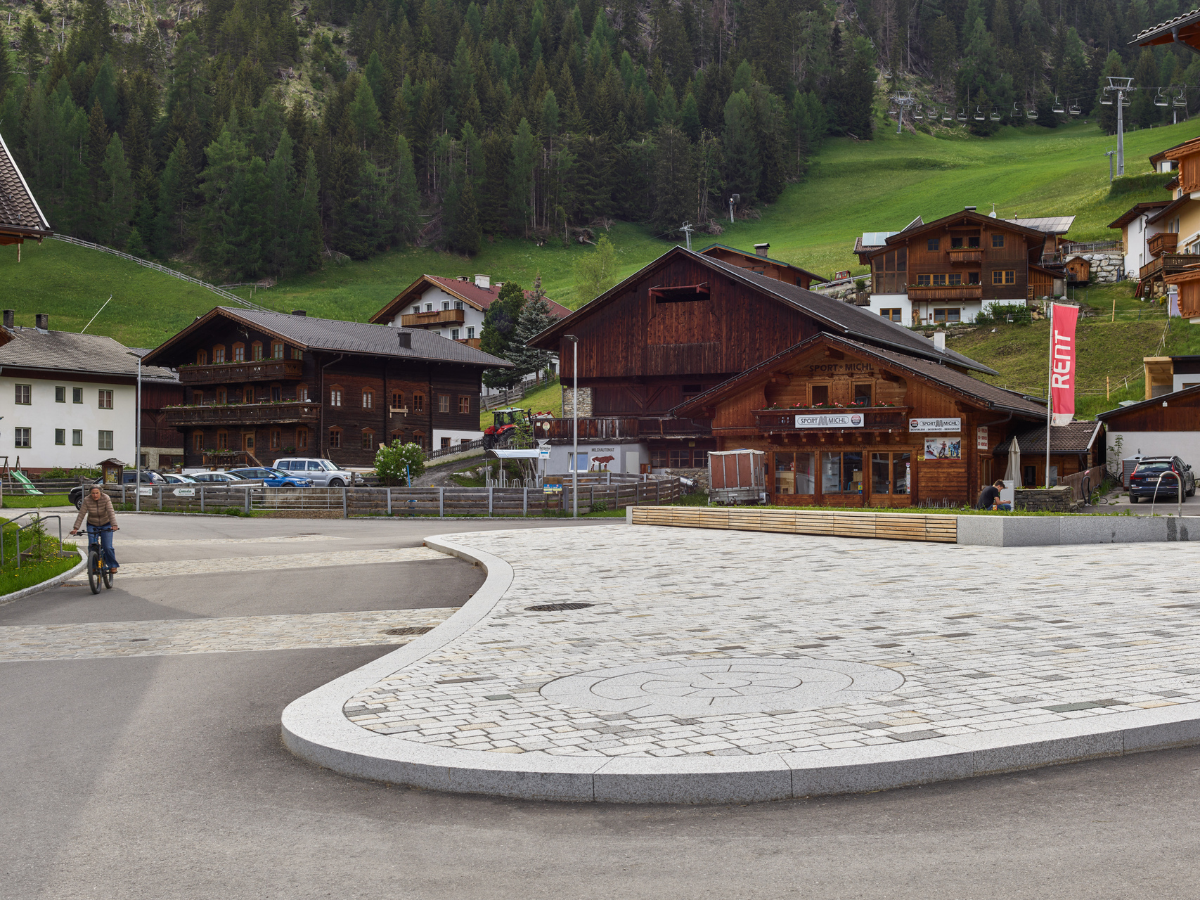 Ein wesentlicher Aspekt bestand darin, die Ortsmitte sicherer für Fußgänger und Radfahrer zu machen. Dazu wurden die Verkehrsflächen mittels einer Granitsteinkante abgegrenzt und auf der Fahrbahn Pflasterflächen markiert. Der dazwischen liegende Dorfplatz, der Raum für kleiner Feste bieten soll, zeichnet in seiner Form die Straßenverläufe nach. Teil des Platzes ist eine „Ackerfläche“, die Bezug auf die bäuerliche Tradition der Gemeinde nimmt. Denn obwohl sich das Ortsbild mit der Entwicklung des Tourismus ab den 1960er-Jahren wesentlich verändert hat, so überwiegt im Ortskern nach wie vor die historische, landwirtschaftlich geprägte Bausubstanz. Das von einem Trinkwasserbrunnen und Sitzmöglichkeiten eingefasste Beet wird jedes Jahr mit anderen Kulturpflanzen wie Gerste, Roggen, Mohn oder seltenen Feldfrüchten aus der Nationalparkregion Hohe Tauern bepflanzt werden und macht so den Lauf der Jahreszeiten und Fruchtfolgen erlebbar. (Text: Claudia Wedekind, nach einem Text der Architekten)