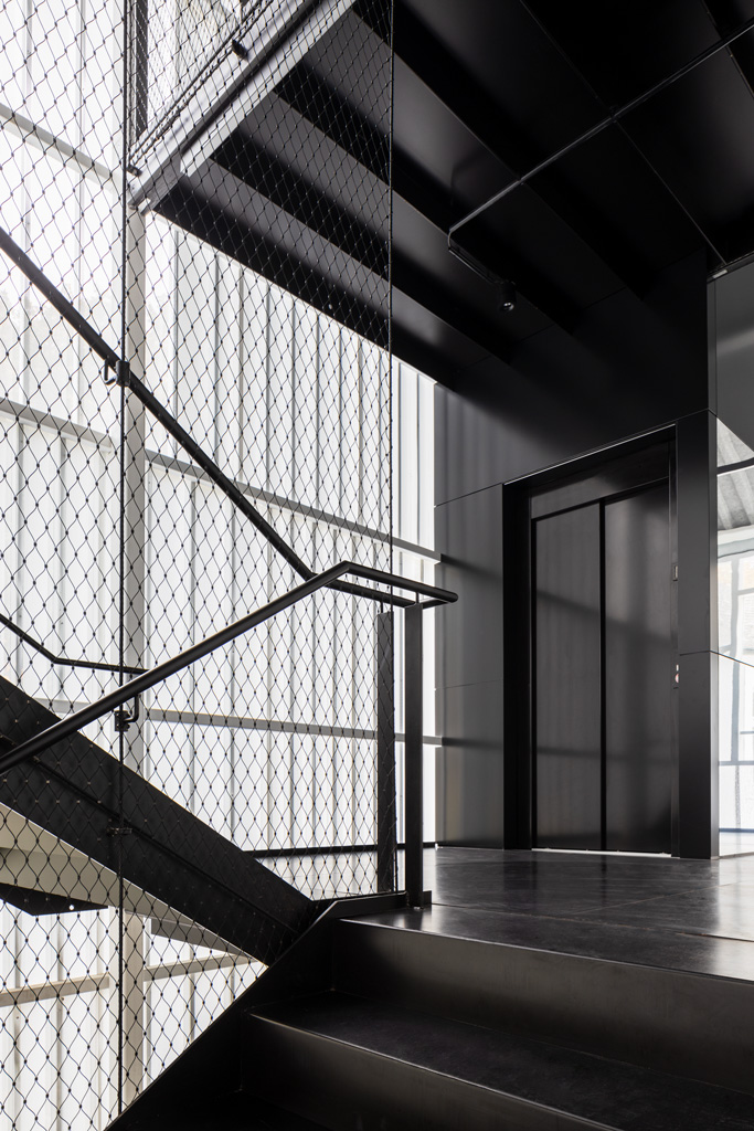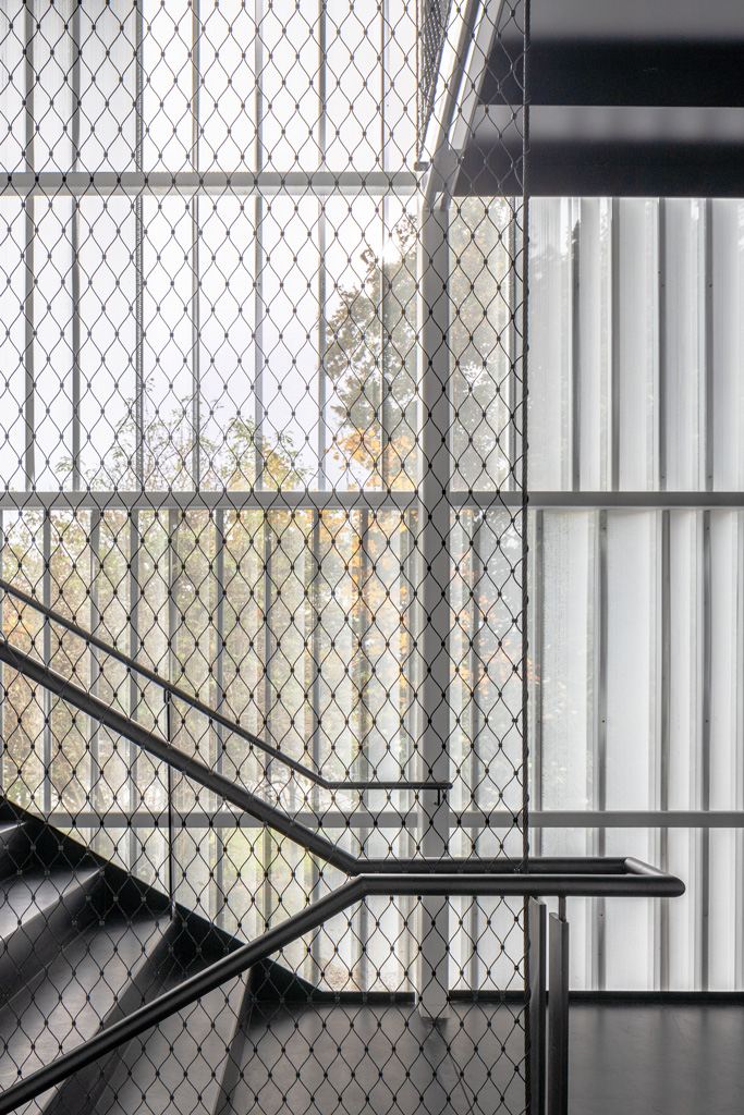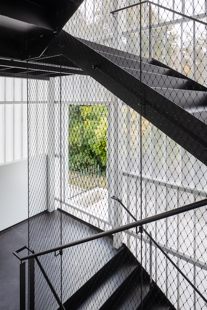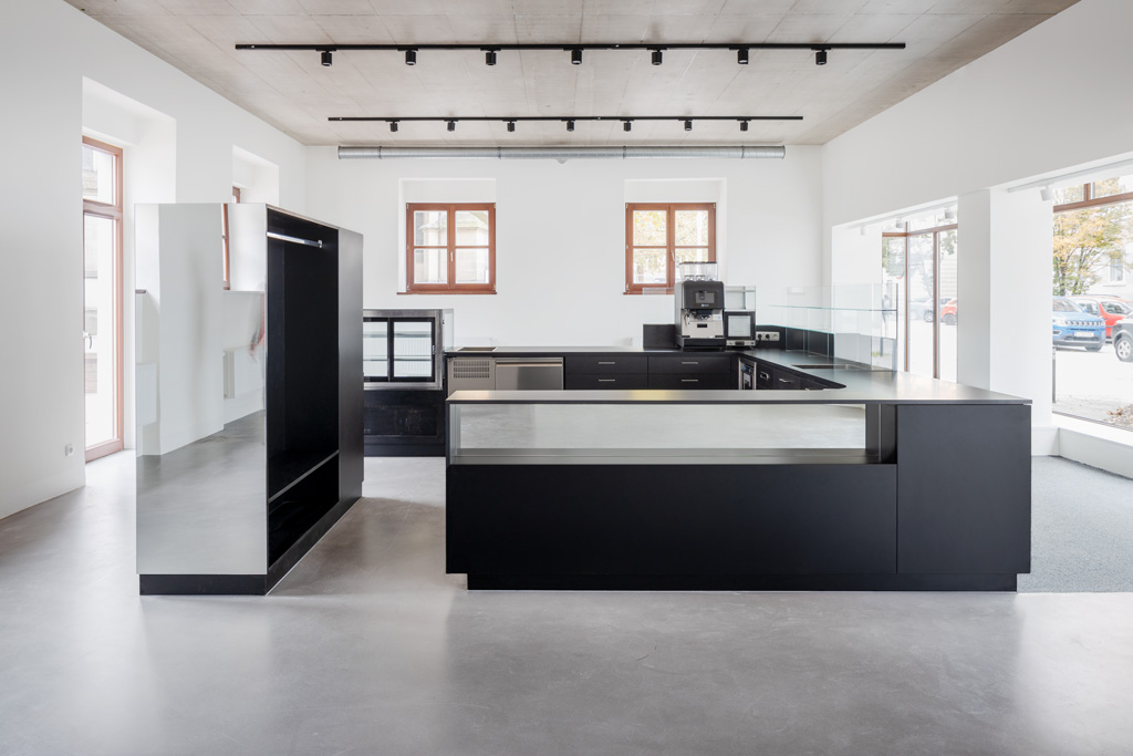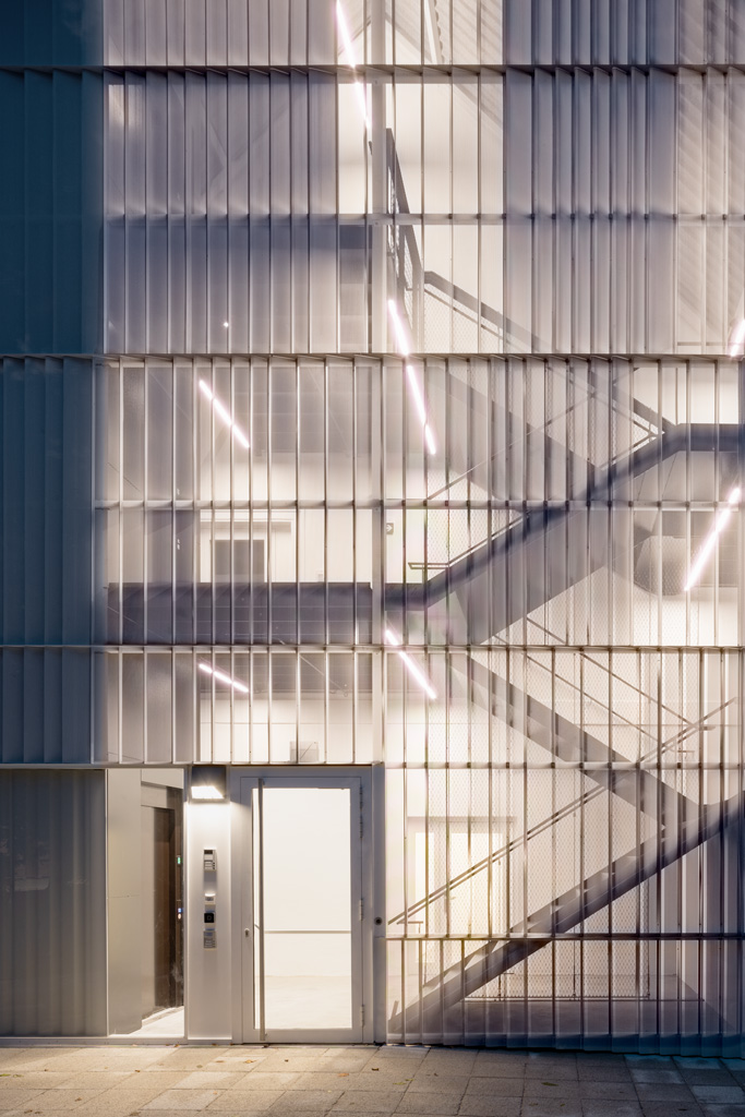 Die jüngste Sanierung bietet innerhalb der bestehenden Kubatur weiterhin Platz für den Laden und die Beratungsbüros. Im Obergeschoss wurde ein neuer Proberaum für die Dommusik geschaffen, mit Notenarchiv im Dachraum. Die denkmalgeschützte Fassade blieb mit Ausnahme von funktional bedingten Veränderungen der Öffnungen erhalten. Der unbeheizte Zubau ist in seiner Formensprache auf die funktionale Bedeutung als Erschließung reduziert und folgt der Kontur der Giebelfassade. Als homogene Hülle trägt der Stahlbau eine Haut aus weißgrauen, feingliedrigen Lochblechen, die das Innenleben in Umrissen erkennen lässt. Einzelne Glaselemente bieten offene Ausblicke und damit Orientierung. (Text: Architekt:innen, bearbeitet)