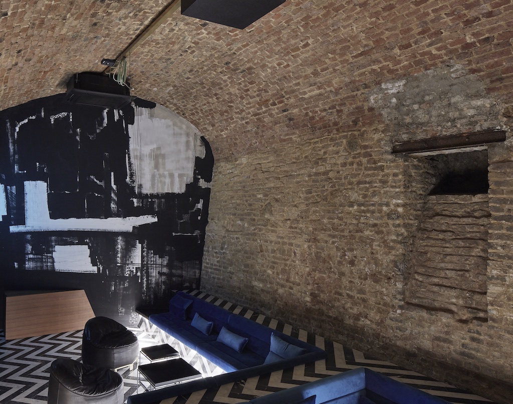 Die Dramaturgie und Erschließung der heutigen Cocktail Bar beginnt mit einem niedrigen und undekorierten, parallel zur Wasagasse verlaufenden Eingangsbereich im Souterrain. Neben der Garderobe führt ein verspiegeltes Vestibül zu einer wie schwebend eingehängten Stiegenkonstruktion, die den eigentlichen Barbereich erschließt. Mehrere Alkoven, Nischen, versteckte Nebenräume und Wiens kleinste Galerie sind um das Herzstück des Betriebs, die sieben Meter lange Bar, herum gelagert.