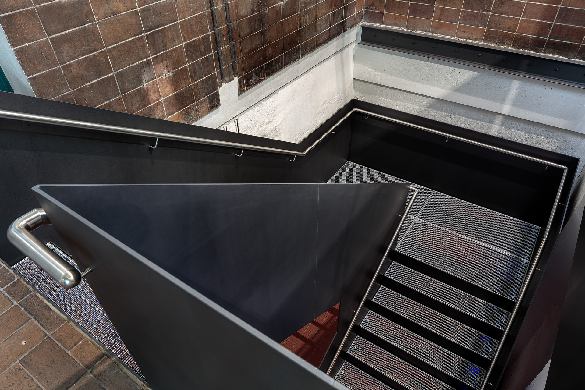 Das ursprüngliche Konzept, das Gebäude wie einen Kristall von innen nach außen strahlen zu lassen, wurde mit einer dreiseitig umlaufenden, zehn Meter hohen Glasfassade wiederhergestellt. Alle Bauteile, die zur Gebäudehülle gehören, wurden denkmalpflegerisch rekonstruiert, also optisch gleich hergestellt. Die Materialien und Farbcodes, die sich aus der Bauforschung ergeben haben (z. B. „Linzer Blau“) wurden wieder verwendet. Die neuen Elemente hingegen wurden bewusst zeitgemäß und farbneutral gestaltet. Transparente Stahl-Glaskonstruktionen machen die beeindruckenden Dimensionen der Bestandsräume in voller Höhe erlebbar und entsprechen zugleich den technischen und ökologischen Anforderungen der neuen Nutzungen. (Text: Tobias Hagleitner, nach einem Text der Architekt:innen)