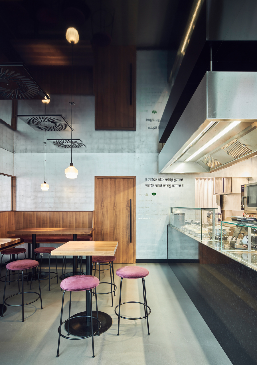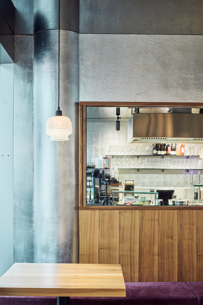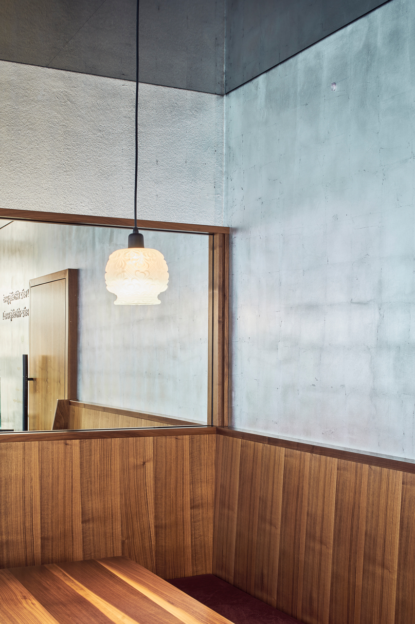 Im Universitätskomplex der SOWI (Architektur: Henke Schreieck) entstand ein Jahr später ein zweites kleines Lokal dieser „Mini-Kette“. Die Materialsprache nimmt wiederum Bezug auf das Mutterlokal „Sensei“ und führt das für die Anichstraße entwickelte Konzept weiter. Silberne Rückwände in Form von Schlagmetall aus Aluminium geben dem kleinen Raum Glanz und Helligkeit, die glänzende schwarze Decke aus Maxplatten verdoppelt optisch die Raumhöhe und Spiegel dienen wiederum der illusionistischen Raumvergrößerung. Im Zusammenspiel mit dem Nußholz der Tische und Bänke und dem schwarzen Granitblock der Speisetheke wird hier wie dort ein Ambiente erzeugt, das an Nepal zu erinnern vermag. Ebenso aus dem ersten Momoness übernommen wurde der in Sanskrit geschriebene Wandspruch „Wenn es Ihnen geschmeckt hat- erzählen Sie es weiter. Wenn nicht – sprechen Sie mit mir“, der über die Frage nach seiner Bedeutung zu Gesprächen und Begegnungen mit den Gästen führt. (Text: Claudia Wedekind, nach einem Text des Architekten)