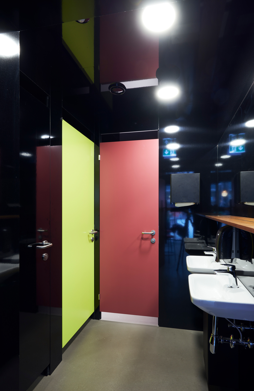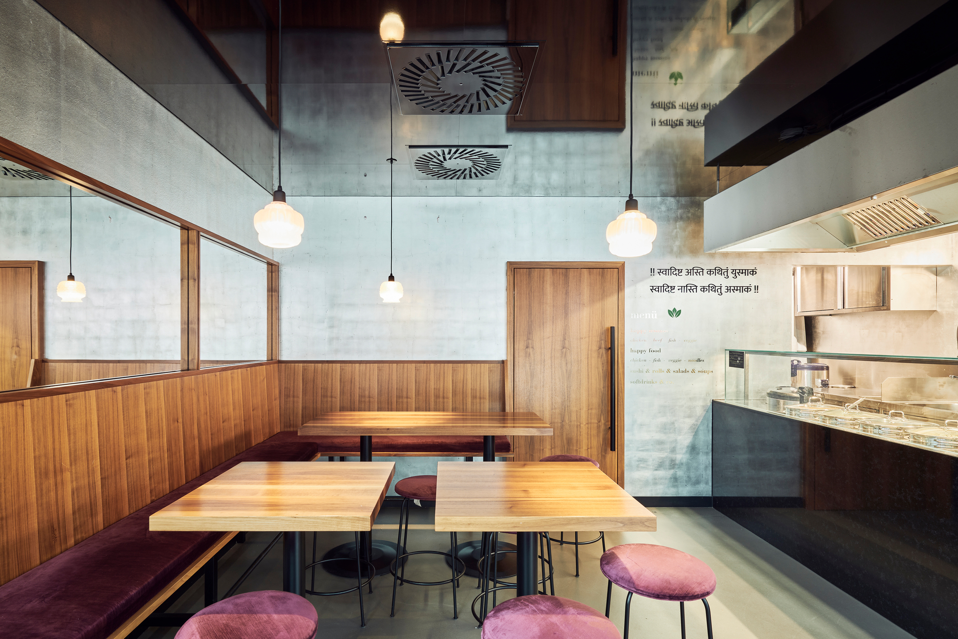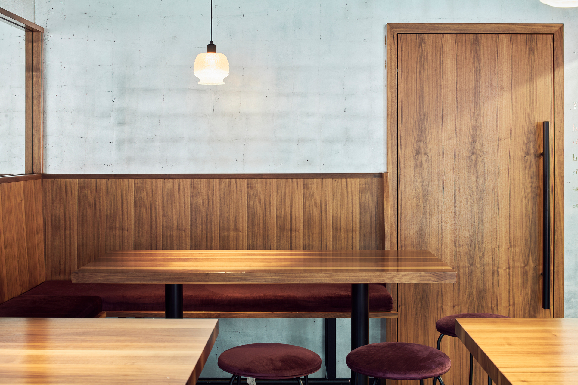 Im Universitätskomplex der SOWI (Architektur: Henke Schreieck) entstand ein Jahr später ein zweites kleines Lokal dieser „Mini-Kette“. Die Materialsprache nimmt wiederum Bezug auf das Mutterlokal „Sensei“ und führt das für die Anichstraße entwickelte Konzept weiter. Silberne Rückwände in Form von Schlagmetall aus Aluminium geben dem kleinen Raum Glanz und Helligkeit, die glänzende schwarze Decke aus Maxplatten verdoppelt optisch die Raumhöhe und Spiegel dienen wiederum der illusionistischen Raumvergrößerung. Im Zusammenspiel mit dem Nußholz der Tische und Bänke und dem schwarzen Granitblock der Speisetheke wird hier wie dort ein Ambiente erzeugt, das an Nepal zu erinnern vermag. Ebenso aus dem ersten Momoness übernommen wurde der in Sanskrit geschriebene Wandspruch „Wenn es Ihnen geschmeckt hat- erzählen Sie es weiter. Wenn nicht – sprechen Sie mit mir“, der über die Frage nach seiner Bedeutung zu Gesprächen und Begegnungen mit den Gästen führt. (Text: Claudia Wedekind, nach einem Text des Architekten)