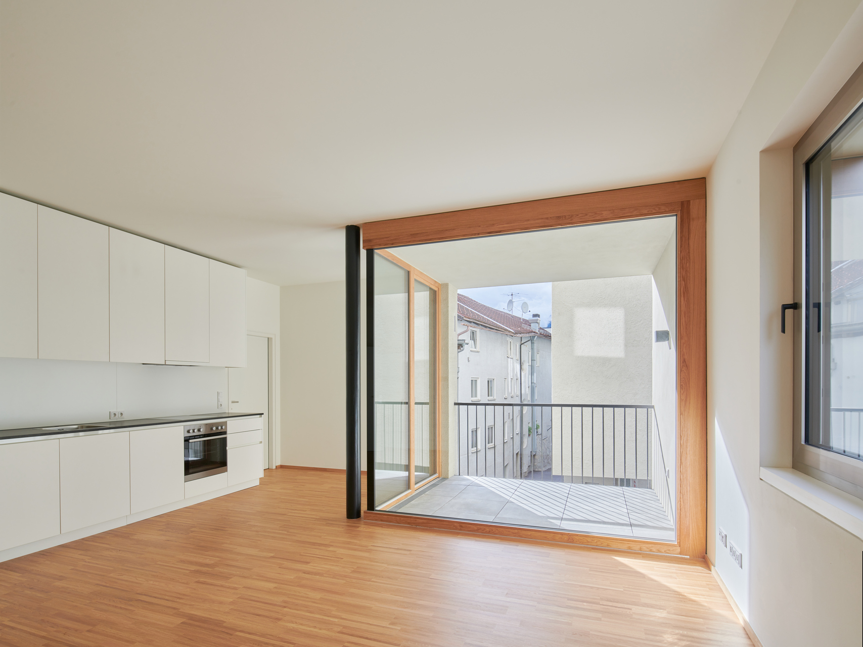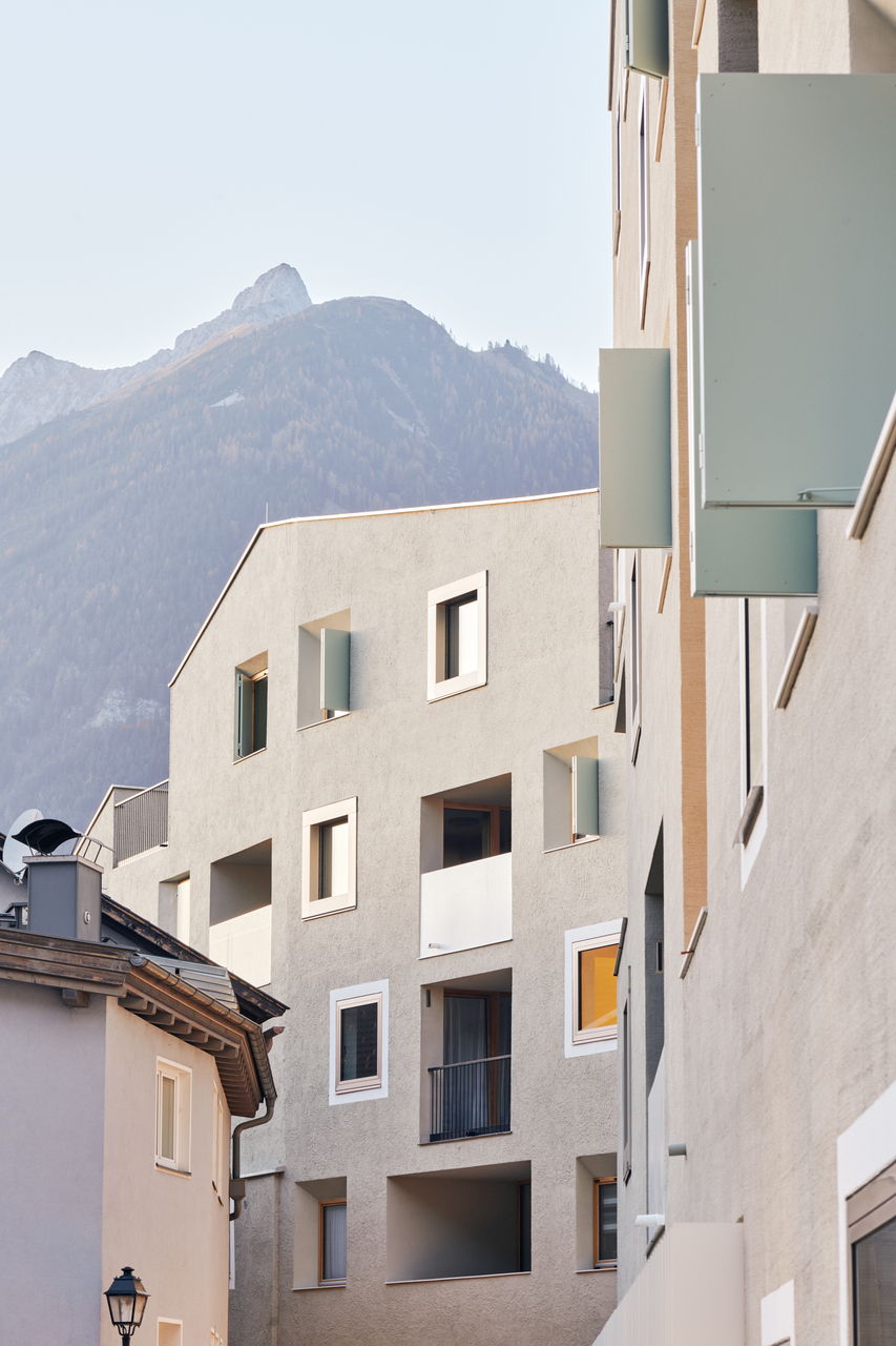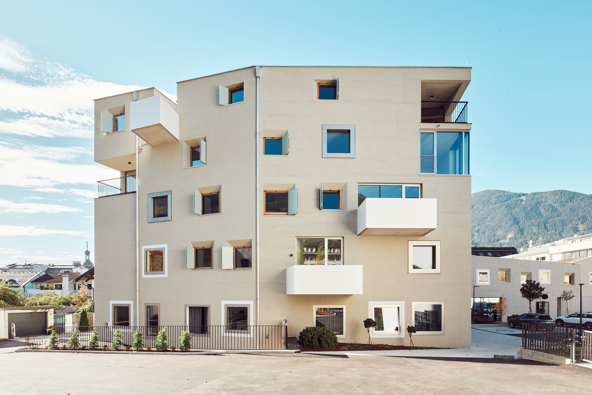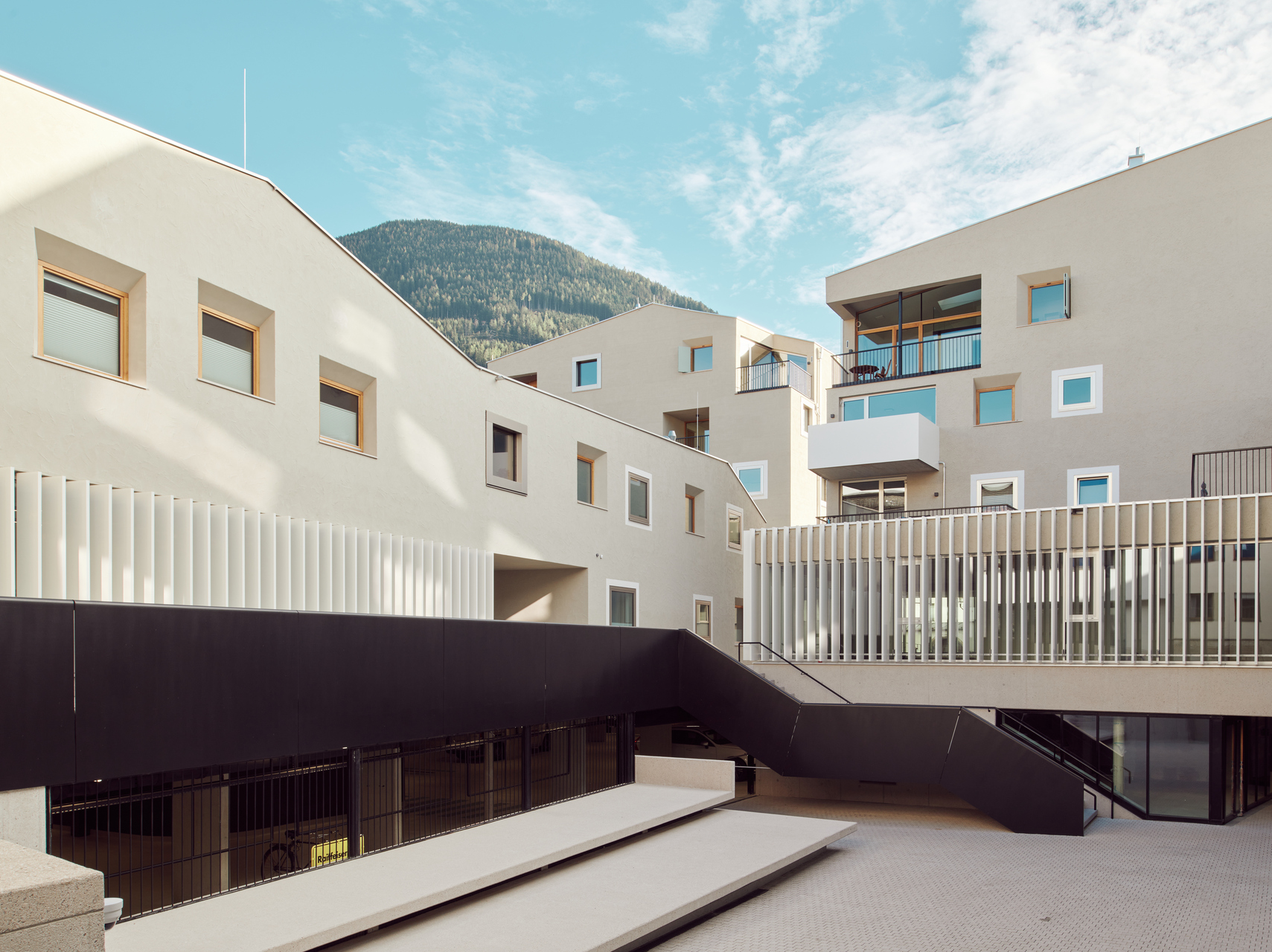In drei, in ihrer Form und Größe in die gewachsene Struktur eingefügten Baukörpern sind u. a. 55 Wohnungen, mehrere Dienstleister aus dem Gesundheitsbereich und ein Café untergebracht. Die neuen Bauteile mit ihren unterschiedlichen haptischen Putzstrukturen sind so platziert, dass wichtige Blickachsen zum Schloss Freundsberg, der Pfarrkirche und zum Franziskanerkloster erhalten bzw. betont werden. Jeder Baukörper, jede Wohnung, jedes Büro und jede Ordination sind einzigartig, haben andere Blickbezüge und Lichtverhältnisse. Die atmosphärischen Qualitäten der Altstadt werden durch die Fenstergrößen und Fensterläden, die vorspringenden Balkone oder Loggien sowie durch die Putzstrukturen und die Farbwahl neu interpretiert.
