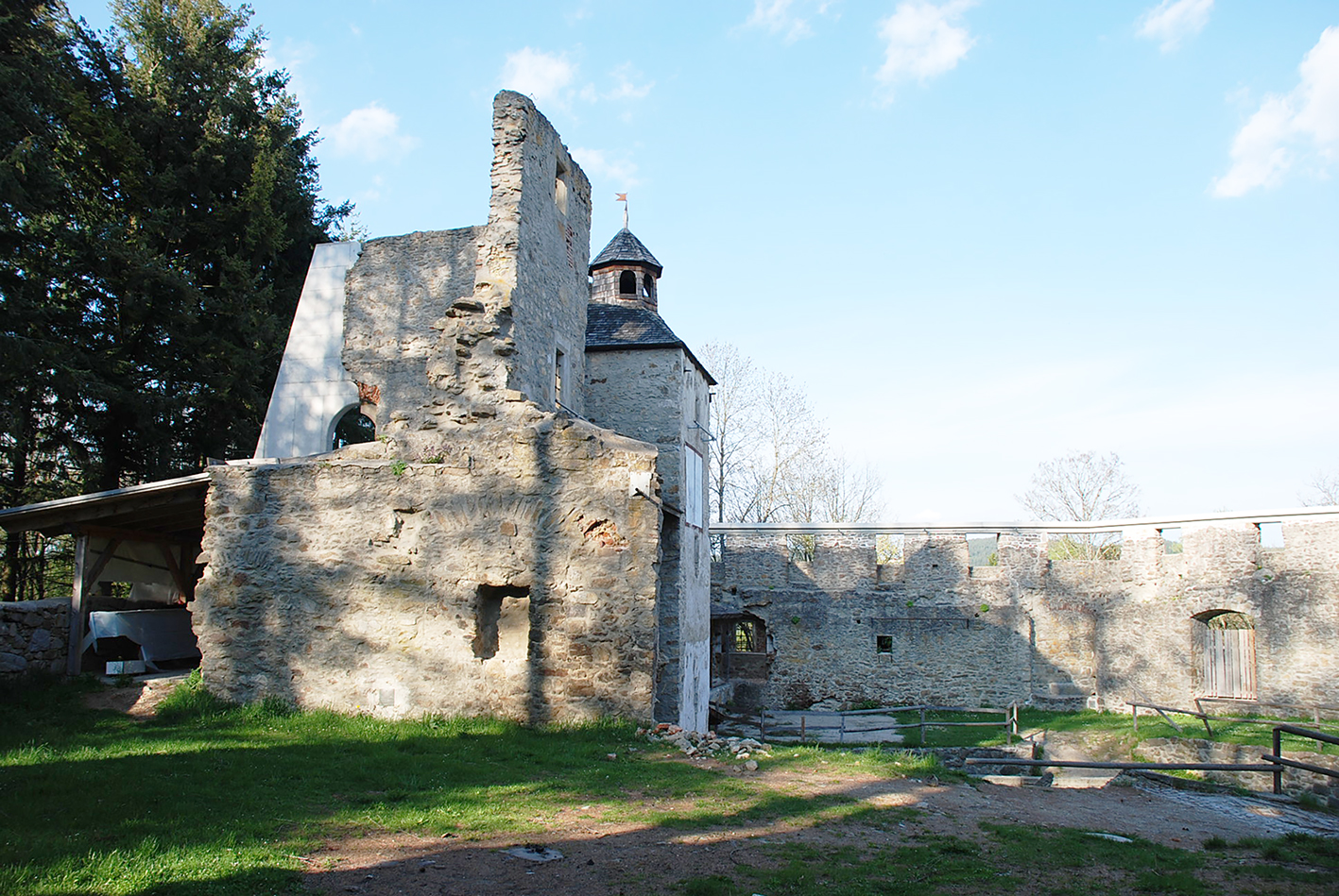 Behutsam wurde bei der ersten, dringend notwendigen Bestandssicherung darauf geachtet, keine Wunden in das alte Mauerwerk zu schlagen. Die neuen, teilweise auch reversiblen Elemente sprechen hingegen ganz bewusst die Material- und Formensprache des 21. Jahrhunderts. Die Tatsache einer fast hundertjährigen „Pause“ sollte nicht geleugnet werden, ohne dabei die so unterschiedlichen Epochen miteinander in Konkurrenz treten zu lassen. In mehreren Etappen wurde eine wesentliche Qualitätsverbesserung für den Theater- und Kulturbetrieb sowie für die touristische Nutzung der Burgruine geschaffen. Es entstanden neue, moderne und barrierefreie WC-Anlagen. Die vom Zerfall bedrohten Außenmauern des Süd-Ost-Traktes wurden mit einem umlaufenden Betonkranz gesichert. Dieser dient neben seiner statischen Funktion auch als Auflage für eine zukünftige, temporäre Bühnenüberdachung. Schon im Mittelalter gab es hier eine Überdachung – womit das ursprüngliche Raumgefühl wieder erlebbar wäre. Die Überreste des Bergfriedes waren so baufällig, dass der Bereich bislang gesperrt war. Das Gemäuer wurde statisch gesichert und der Abschluss neu aufgebaut.