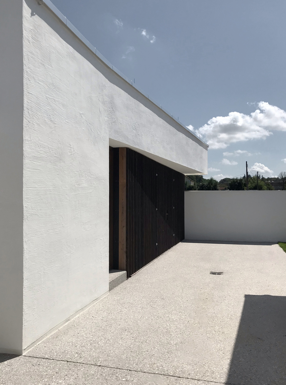 Mit der Grundsanierung der Bestandsanlage wurde auch das Blechdach erneuert; Betonstützen und Bestandstüren wurden saniert bzw. restauriert. Beim Kirchen- und Turmgebäude wurden lediglich Malerarbeiten vorgenommen. Die Originalstützen der Wandelhalle wurden wegen ihres schlechten Zustandes in exakter Nachbildung ersetzt. An der Stelle des abgebrochenen unterkellerten Totengräberhauses wurde ein zeitgemäßer Verwaltungsbau mit Lager errichtet. Als Reminiszenz an die länglichen Fensterelemente des Bestandes wurde er mit einer Lamellenstruktur versehen. Im Bereich der überdachten Vorhalle wurden die Kunsttravertinplatten durch eine Betonplatte mit gestockter Oberfläche ersetzt. Die weiße Putzfassade fügt sich ins Gesamtgefüge und verschmilzt mit der historischen Anlage wieder zum einheitlichen Ensemble. (Text: Tobias Hagleitner, nach einem Text der Architekt:innen)