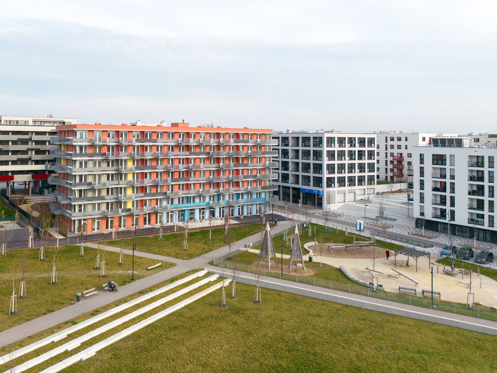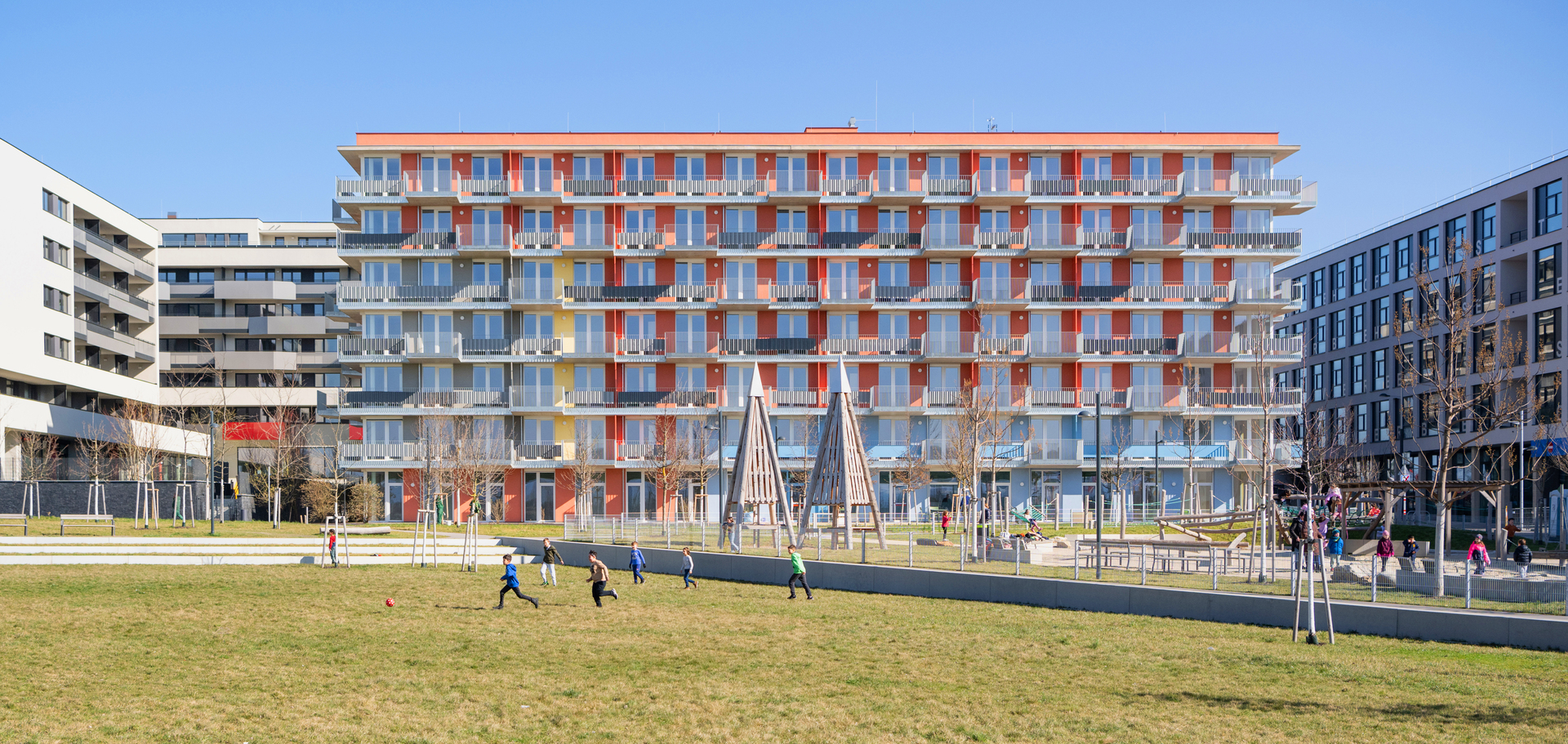 Im Stadterweiterungsgebiet Seestadt Aspern hat WUP architektur mit geringen Mitteln einen Wiener Gemeindebau mit besonders günstiger Miete errichtet. Das Projekt mit kostengünstigen Baustoffen und repetitiven Elementen lagert die Frage von Wertschätzung und Ästhetik in den Bereich sozialer Kompetenz aus.