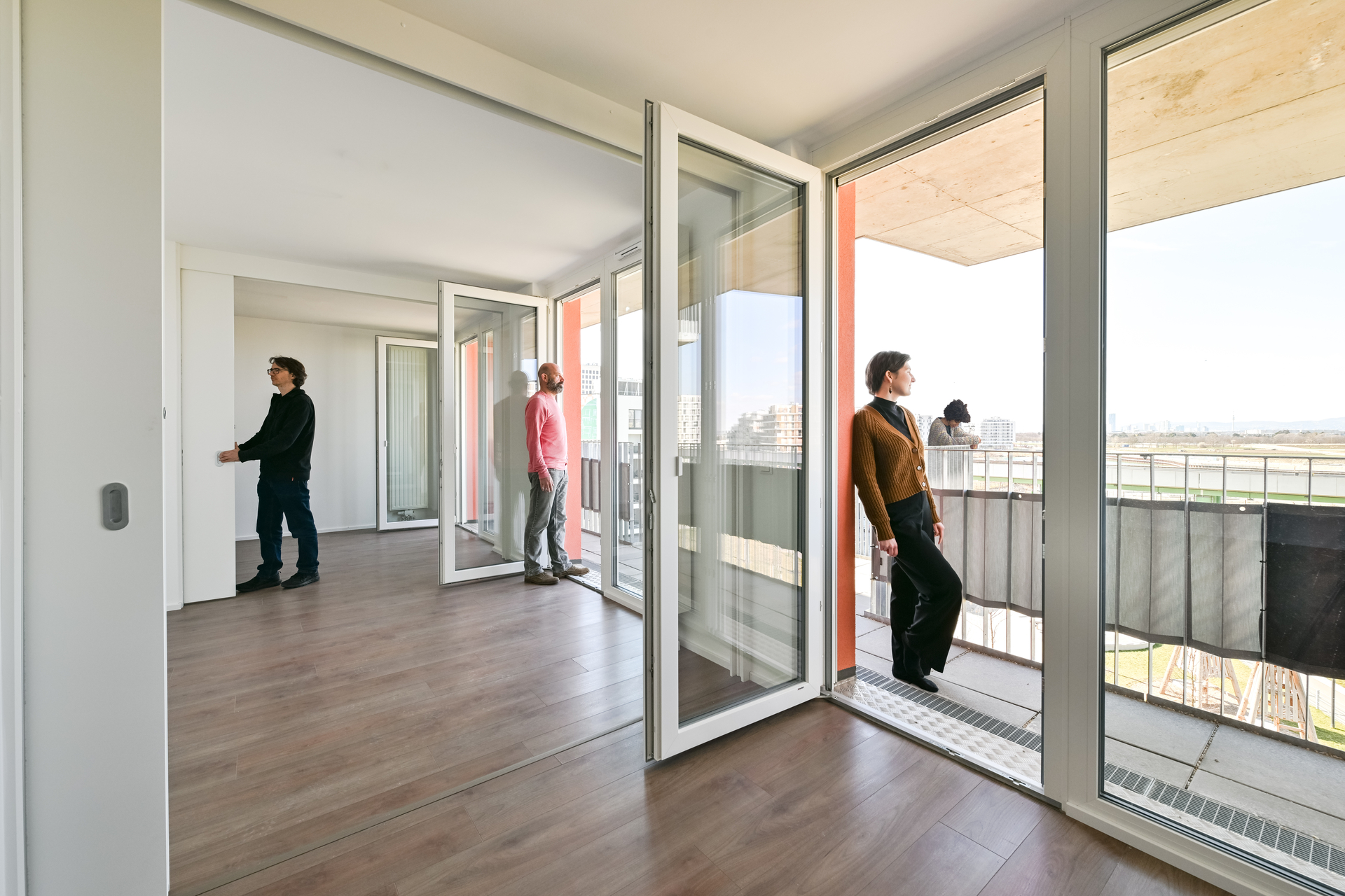 Der mit Gemeindemitteln errichtete Wohnbau in der Seestadt Aspern, direkt am neu angelegten, 30 000 m² großen Elinor-Ostrom-Park gelegen, ist das nunmehr siebte realisierte Projekt der Gemeindebau-Neu-Offensive, die die Stadt Wien vor wenigen Jahren aufgenommen hat. 2023 – also genau 100 Jahre nach Einführung der Wiener Wohnbausteuer – wollte die Wiener Gemeindewohnungs-Baugesellschaft (WIGEBA) in Zusammenarbeit mit WUP architektur ein Exempel statuieren und entwickelte ein sozial wie auch funktionstechnisch nachhaltiges Wohnmodell für Menschen mit kleinem Portemonnaie und großem Zimmerbedarf.