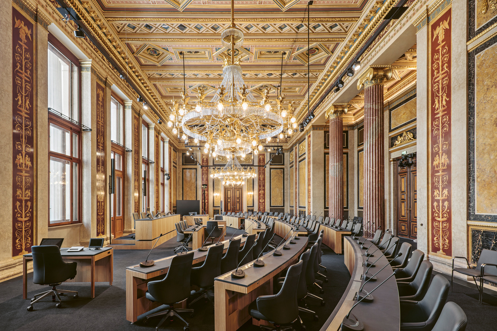 Die einzelnen Schritte der Anpassung an aktuelle und zukünftige Anforderungen orientieren sich in einer Art Fortschreibung am architektonischen Konzept Theophil Hansens und ergeben in der Summe wieder ein homogenes Bild. Die historischen Räume wurden nachhaltig instandgesetzt; durch die teilweise Rücknahme späterer Einbauten erhielten sie ihre Prägnanz zurück.