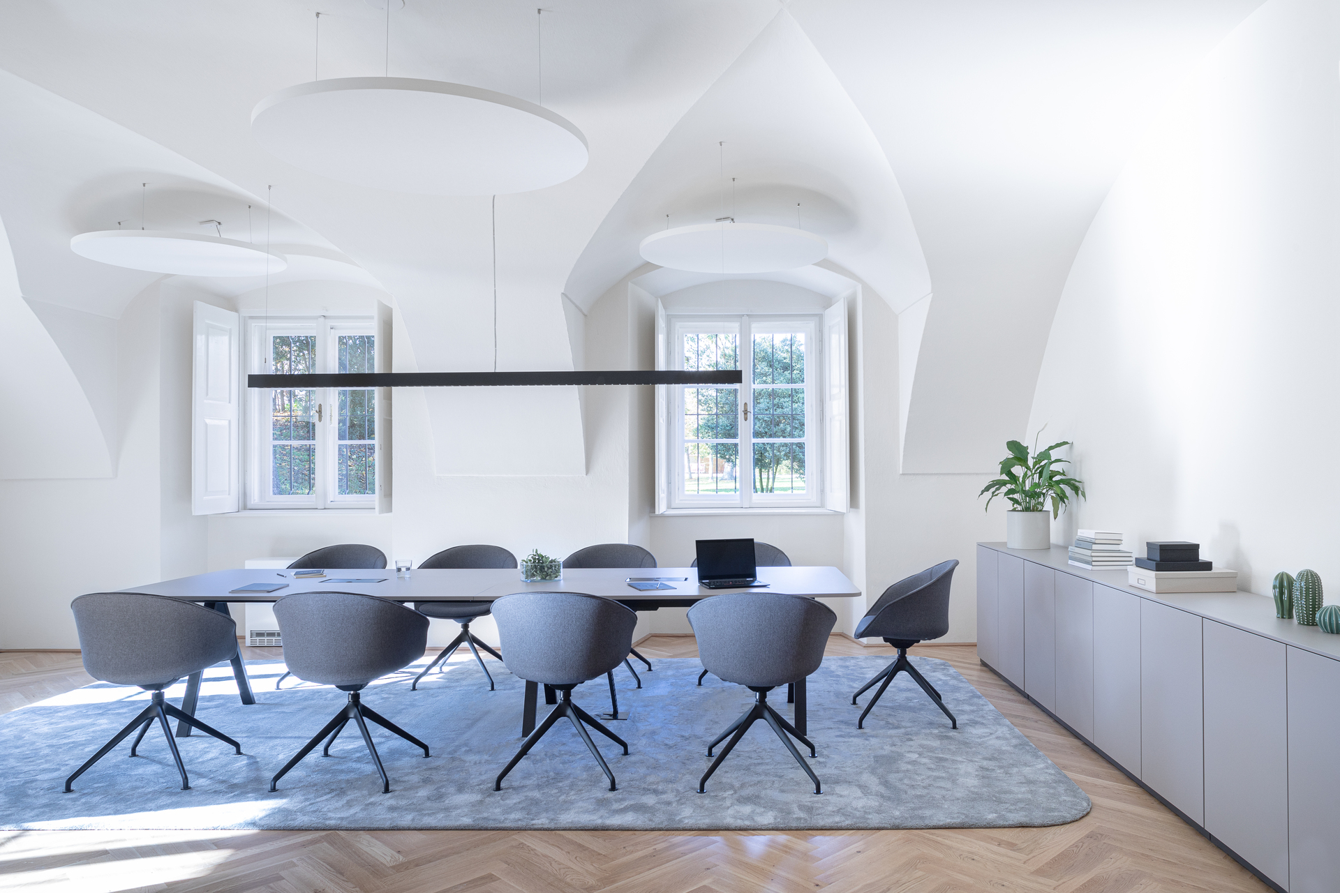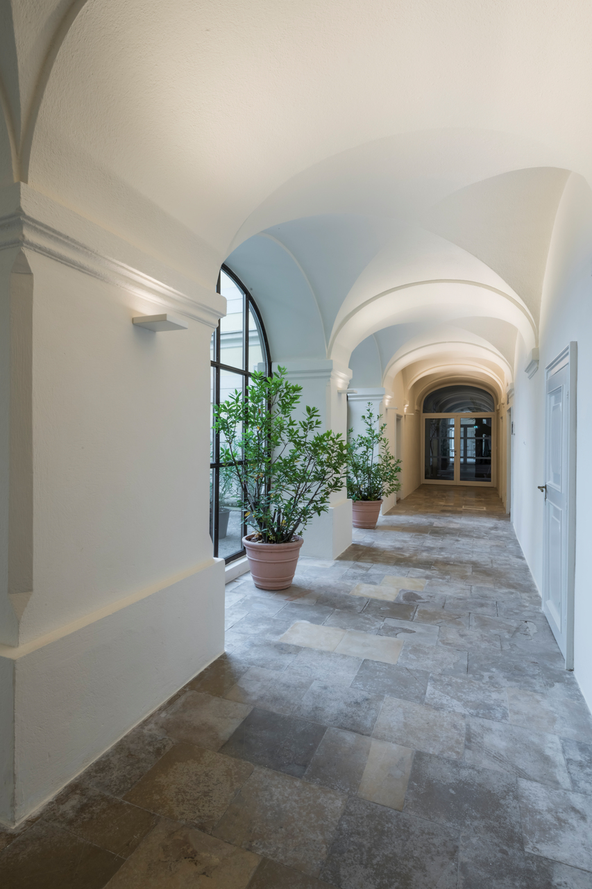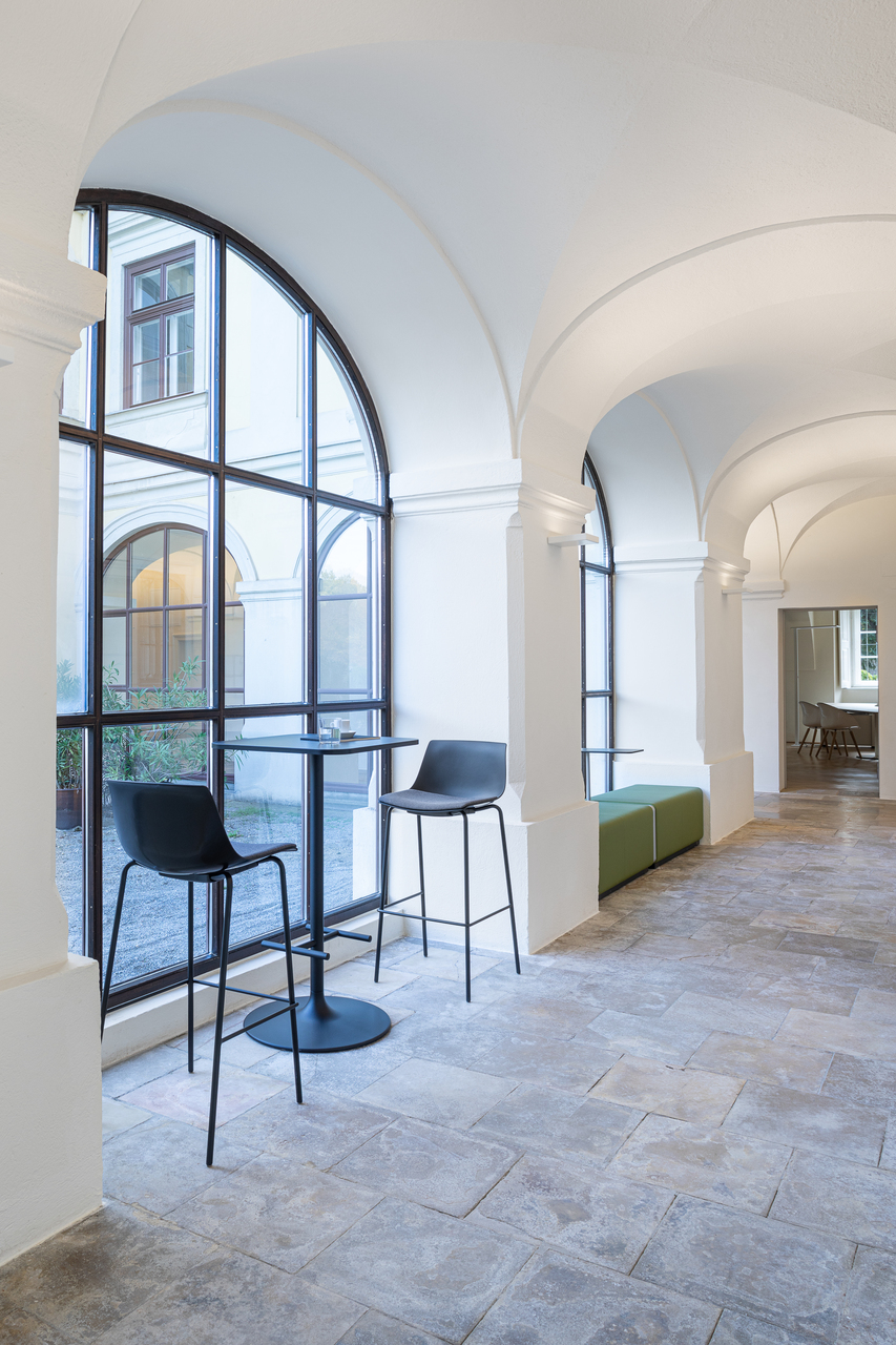 Es galt die bestehenden räumlichen Qualitäten des Schlosses bestmöglich wiederherzustellen, ohne sichtbare Eingriffe in die Architektur dieser Kulturstätte vorzunehmen. In Abstimmung mit dem Bundesdenkmalamt wurden Instandsetzungen vorhandener Oberflächen und sanierungsbedürftiger Bauteile sowie neuer Materialeinsatz zielgerichtet vorgenommen. Eine barrierefreie Erschließung, die Erneuerung der Haustechnik und des baulichen Brandschutzes galten als besondere, planerische Herausforderung. Ein zeitgemäßes Interieur und neues Lichtkonzept schaffen in den Innenräumen Bezug zur Gegenwart und erfüllen die Anforderungen des Gemeindeamts.
