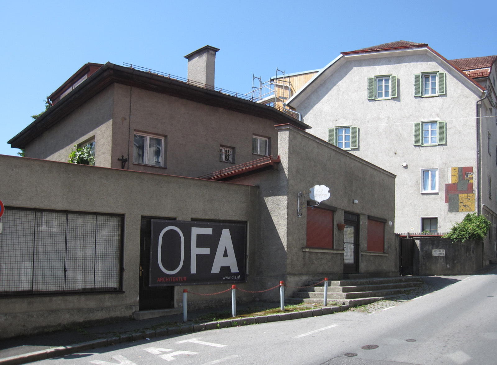 Auf dem ca. 1.000 m² großen, stark durchgrünten Grundstück - eigentlich eine Ausnahme in der sonst recht dichten Bebauung - befand sich ein kleines villenartiges Gebäude aus den 1920er Jahren mit integrierter Druckwerkstatt und vorgelagertem kleinen Gassenlokal. In gewisser Weise wurde trotz der doch recht massiven Verdichtung an diesen Charakter angeknüpft. Eine grob L-förmige Struktur bildet mit dem südlichen Nachbargebäude einen begrünten Hof zur Straße, der durch einen eingeschoßigen Vorbau mit halböffentlicher Nutzung vom starken Verkehr abgeschirmt wird.