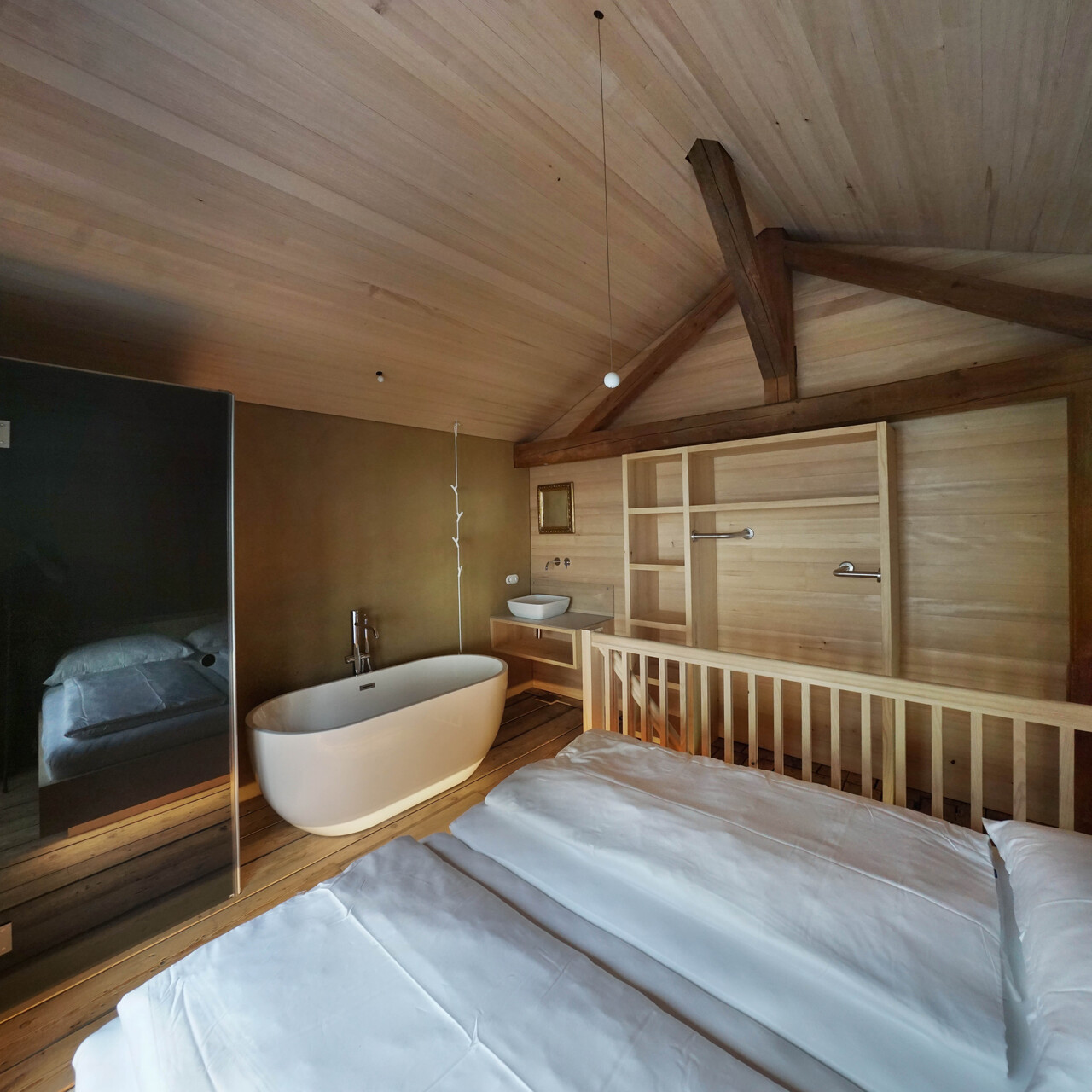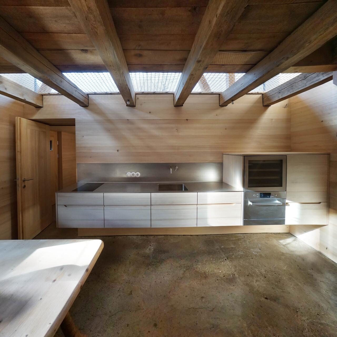 Madritsch Pfurtscheller sahen im alten, leeren Stall eine wertvolle Ressource und respektierten seinen historischen, materiellen, handwerklichen, semantischen und emotionalen Wert. Als „immer schon dagewesen“ ist er ein konstituierender Bestandteil des Ortes, es war klar, dass er bleiben und zum Ausgangspunkt einer neuen Geschichte werden musste.