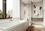 Zur Parkfläche „freie Mitte“ hin ist der Baukörper abgetreppt und mündet in einen eingesenkten, begrünten Tiefhof, der Licht ins Untergeschoss bringt und mit Sitzstufen einen zusätzlich nutzbaren Freiraum zwischen Naturraum und Gebäude schafft.