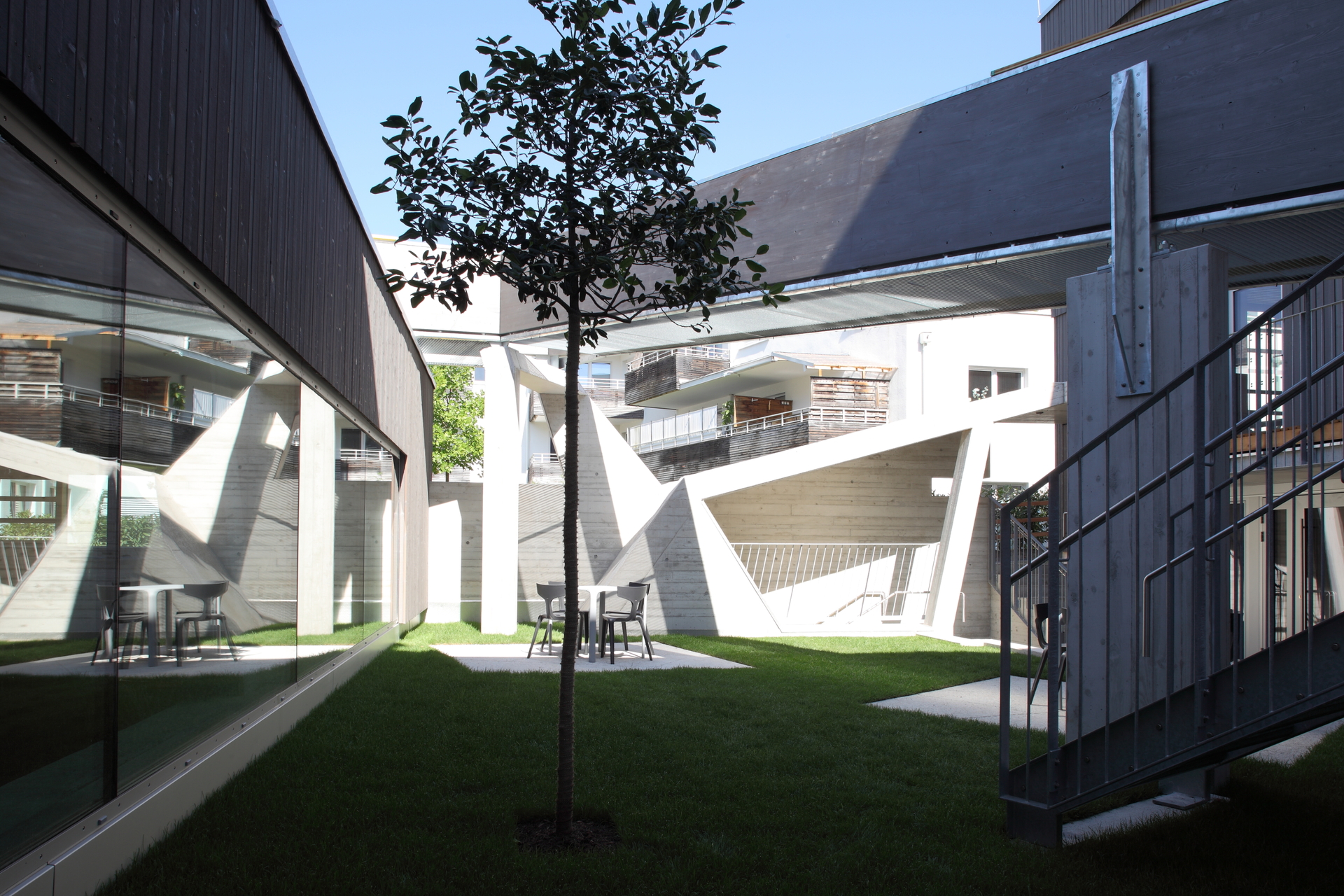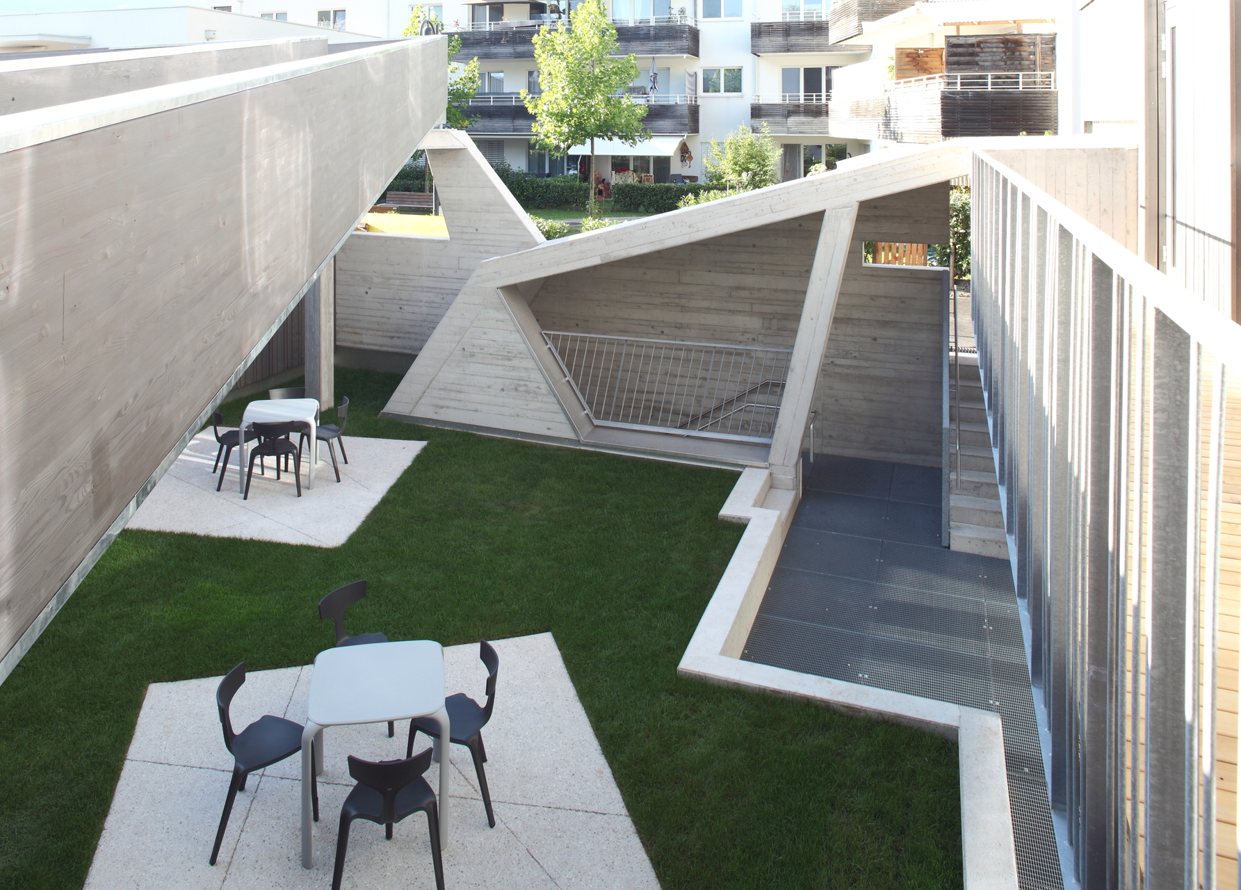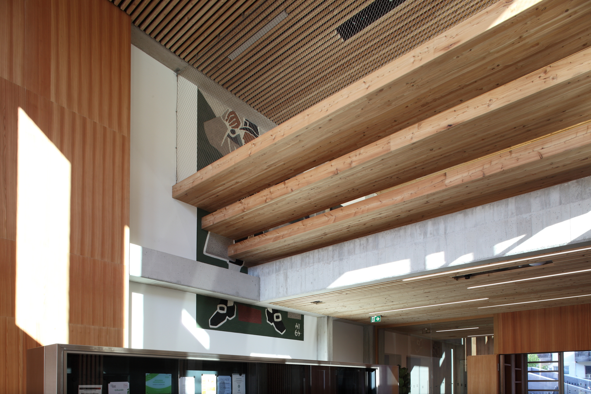 Die Umsetzung der Bauaufgabe mit Wiederverwendung des Bestandes und viel Holz, sichtbar und konstruktiv, erzeugt eine hohe Aufenthaltsqualität in den Innenräumen bei einem vernünftigen ökologischen Fußabdruck. (IAS, nach einem Text des Architekten)