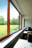 Für die Beheizung respektive Kühlung steht eine Grundwasserwärmepumpe samt Bauteilaktvierung (mit Deckenkühlung) zur Verfügung. Große Vordächer und der außenliegende Sonnenschutz reduzieren den sommerlichen Wärmeeintrag auf ein Minimum, wobei eine kontrollierte Zu- und Abluftanlage mit Wärmerückgewinnung und eine Nachtlüftung für ein optimiertes Raumklima sorgen. Auf dem Gründach befindet sich eine PV-Anlage mit einer maximalen Leistung von 152 kWp.