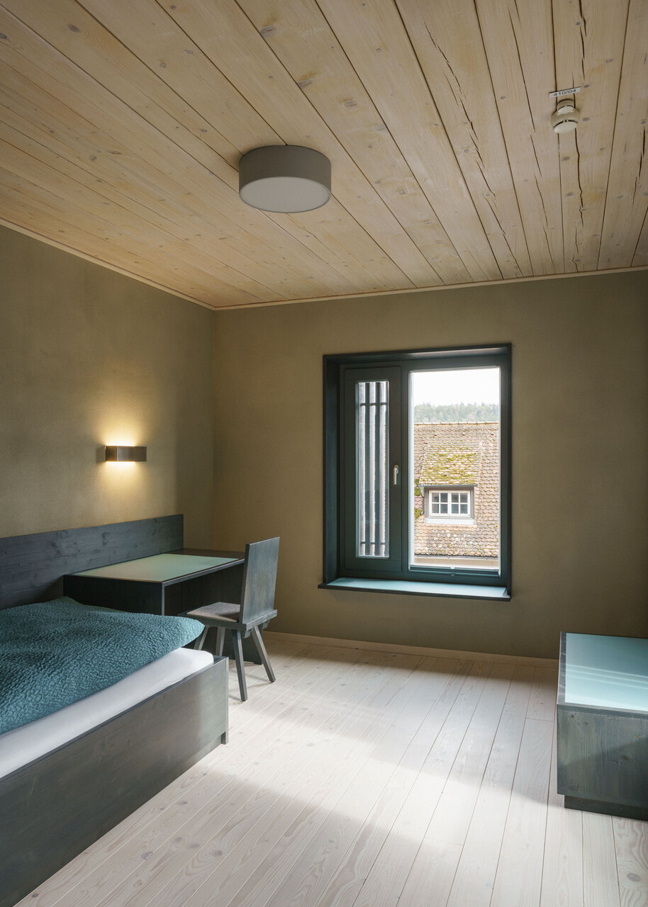 Für ein gesundes und angenehmes Raumklima wurde an den Innenwänden Lehmputz verwendet: er ist feuchteregulierend, nimmt Schadstoffe auf und hat positive Auswirkungen auf das Raumklima und das Behaglichkeitsgefühl der Gäste.
