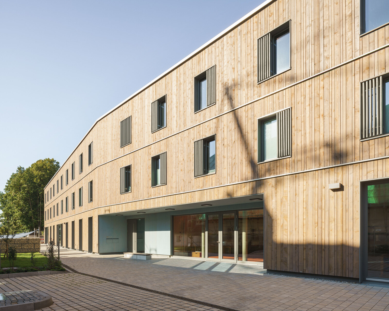Neben der geforderten energetischen Einhaltung des Passivhausstandards kamen, soweit baukonstruktiv möglich, ausschließlich CO2-neutrale Baustoffe aus regionaler