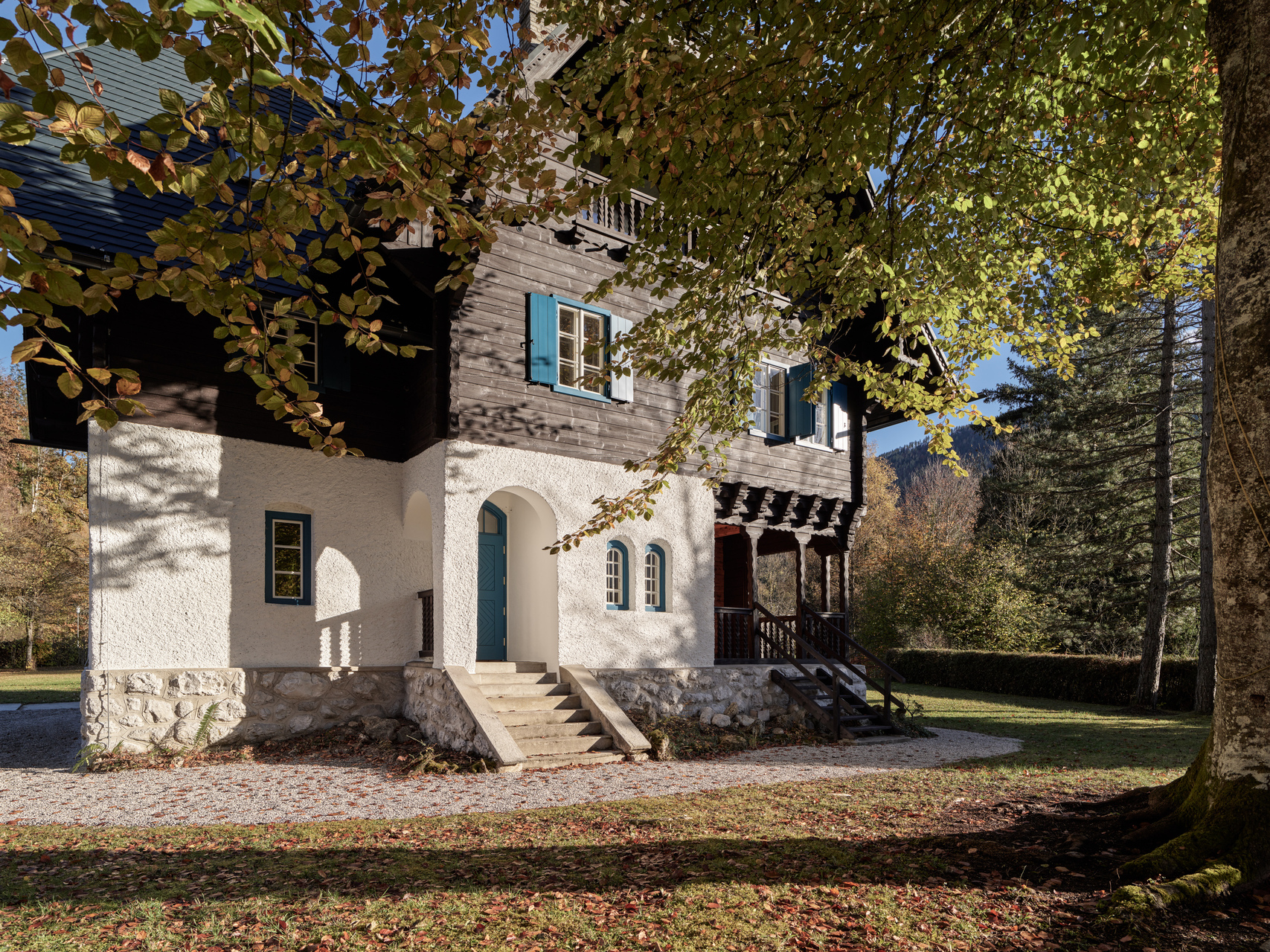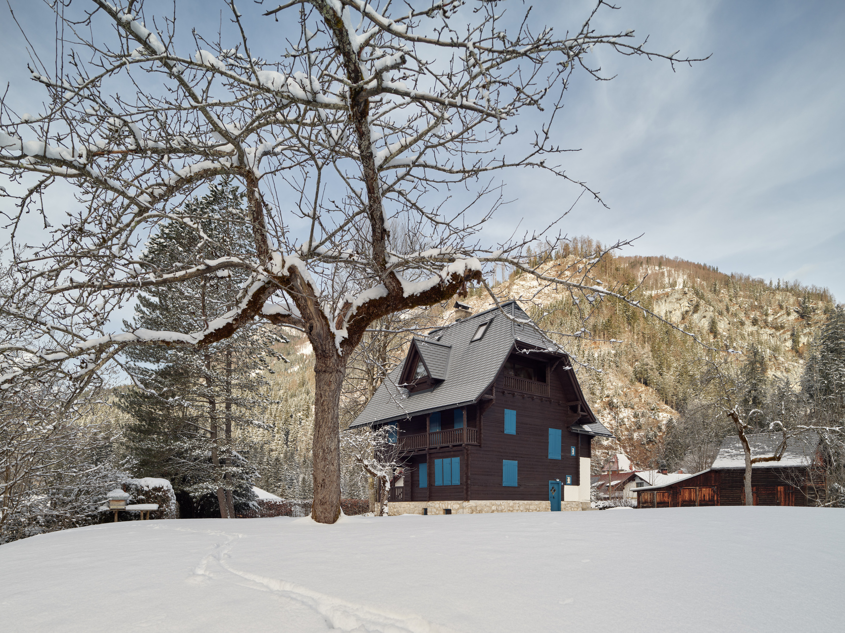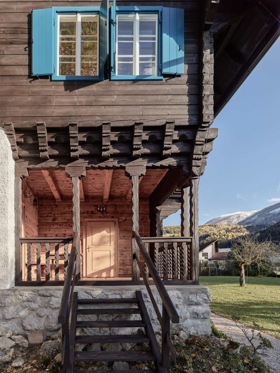 Auch sonst gab es dort und da kleine Eingriffe und Überarbeitungen im Haus. So machen neue Nachtspeicheröfen die Nutzung im Winter komfortabler. In Erd- und Obergeschoss bringen zwei zusätzliche Fenster mehr Licht herein. Der Putz wurde ausgebessert, die Holzvertäfelungen wurden saniert, der Fußboden aus Massivholzdielen in Lärche wurde abgeschliffen. Was immer erhalten werden konnte, blieb erhalten. Die Kastenfenster wurden restauriert, morsche und vom Schädling befallene Teile der Blockwand wurden ersetzt, die Fassade wurde sandgestrahlt und mit Ölfarbe gestrichen – in einem Ton nahe dem Original. (Text: Tobias Hagleitner, nach einem Text der Architekt:innen)