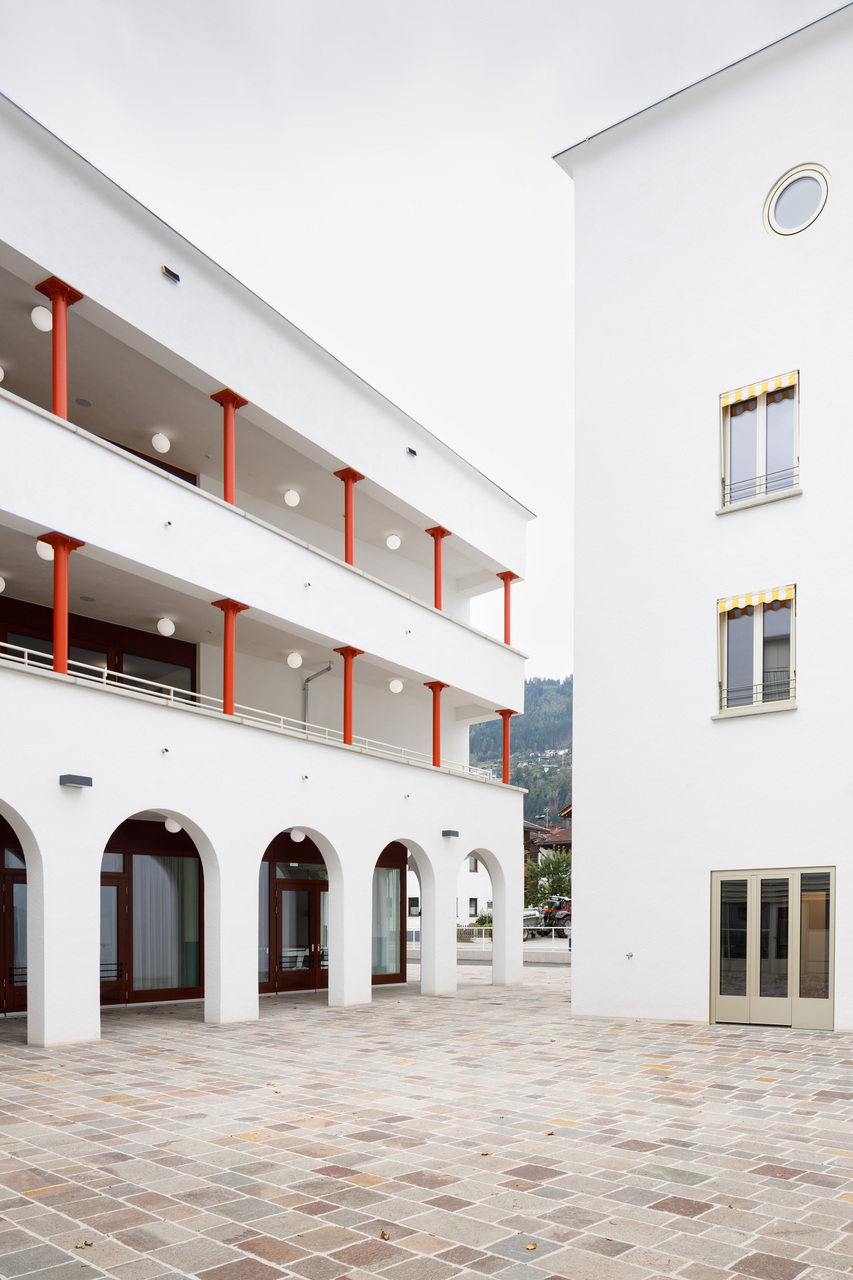 Das großzügige Ensemble verleiht der Ortsmitte von Zell eine fast urbane Dichte, es strahlt eine heitere Atmosphäre der Gelassenheit und Selbstverständlichkeit aus. Der Süden ist hier nicht mehr weit, der leise plätschernde Brunnen im Hof erzählt von einer kleinen mediterranen Piazza. (Text: Tina Mott)