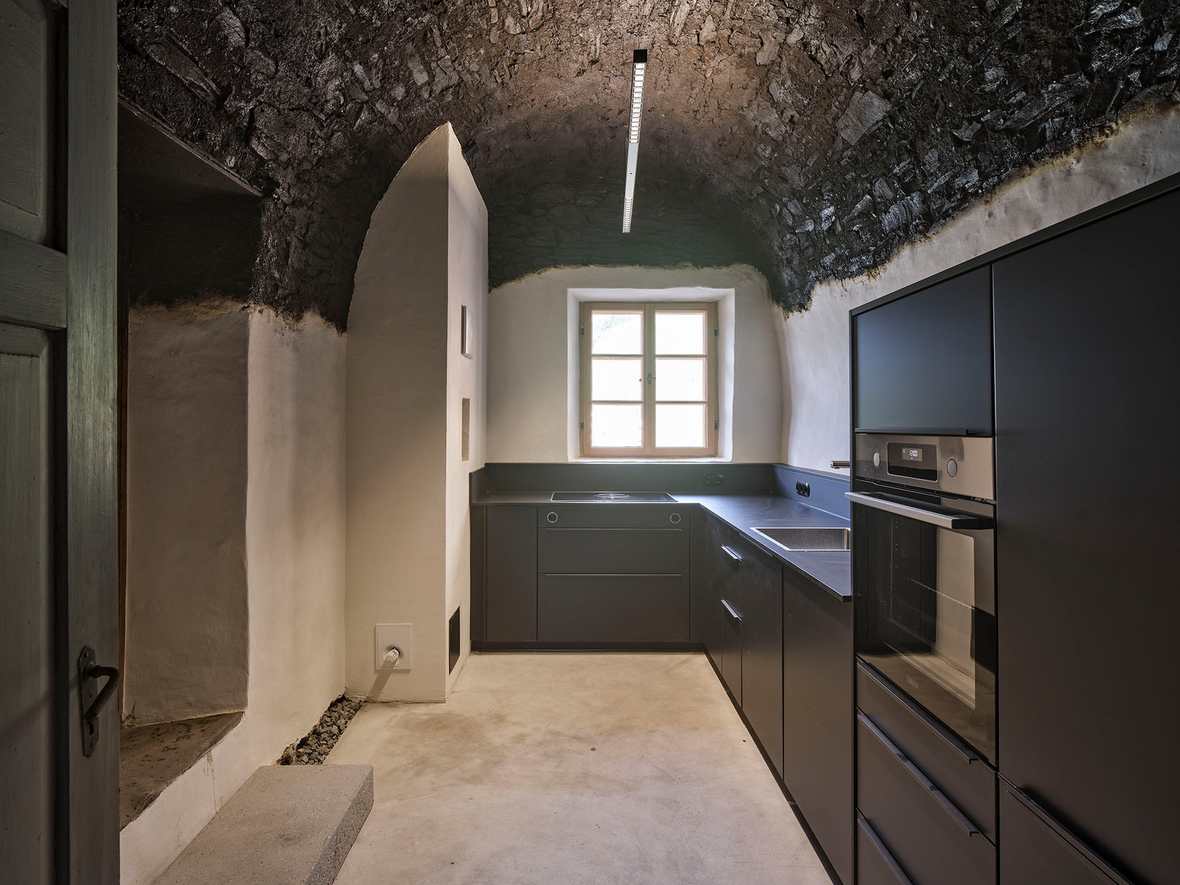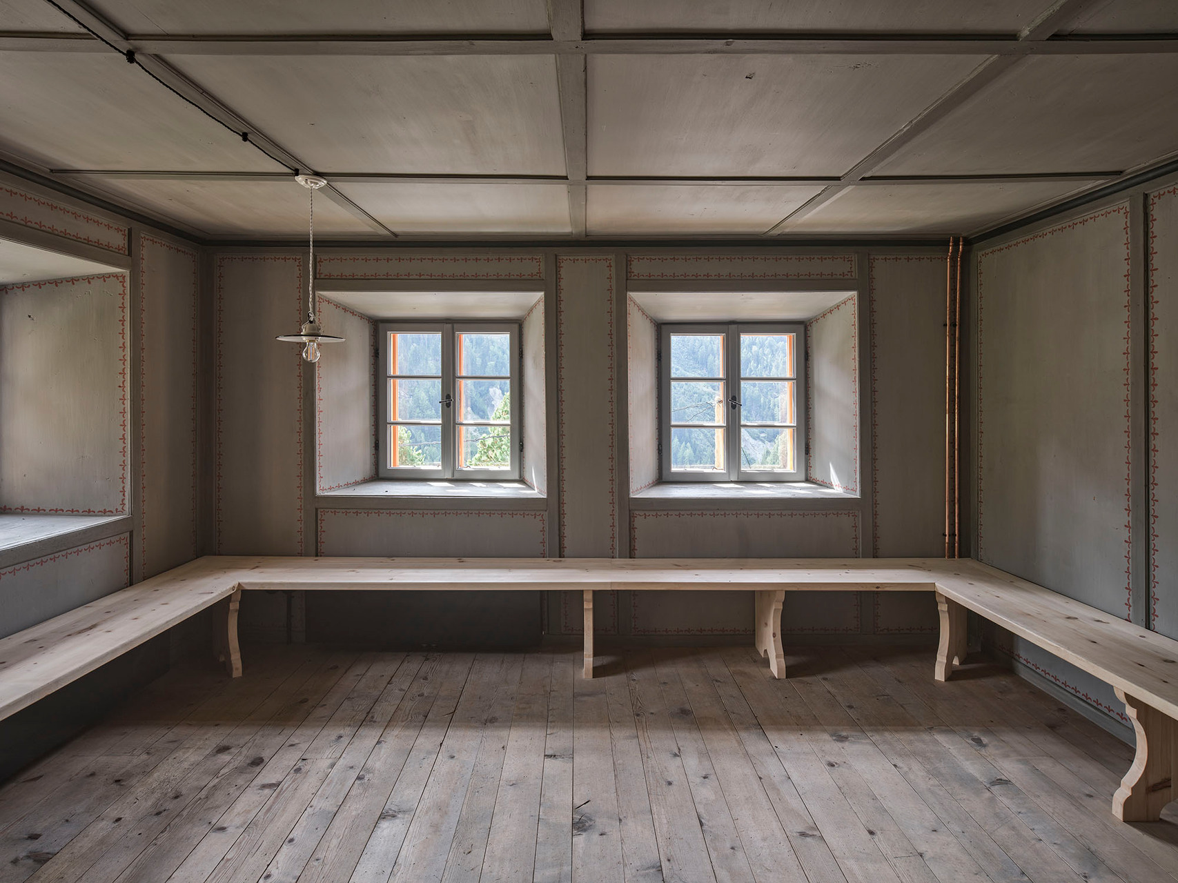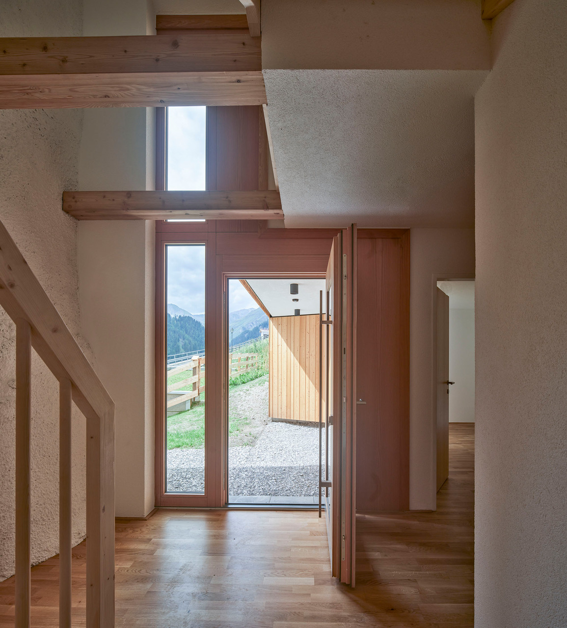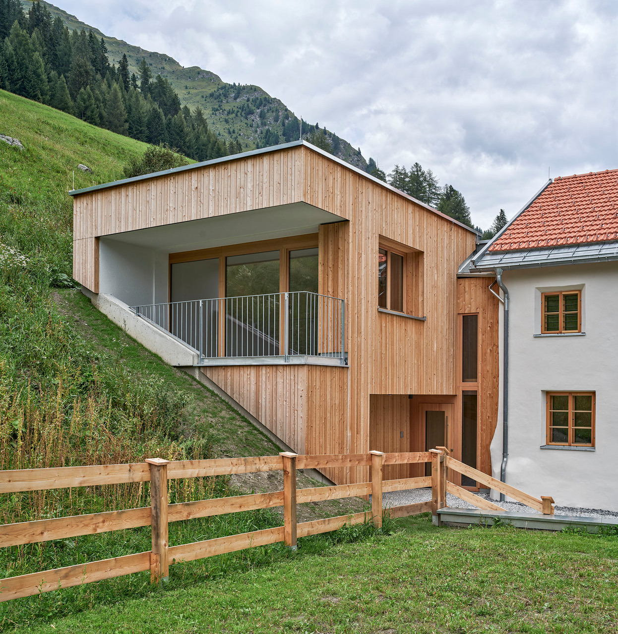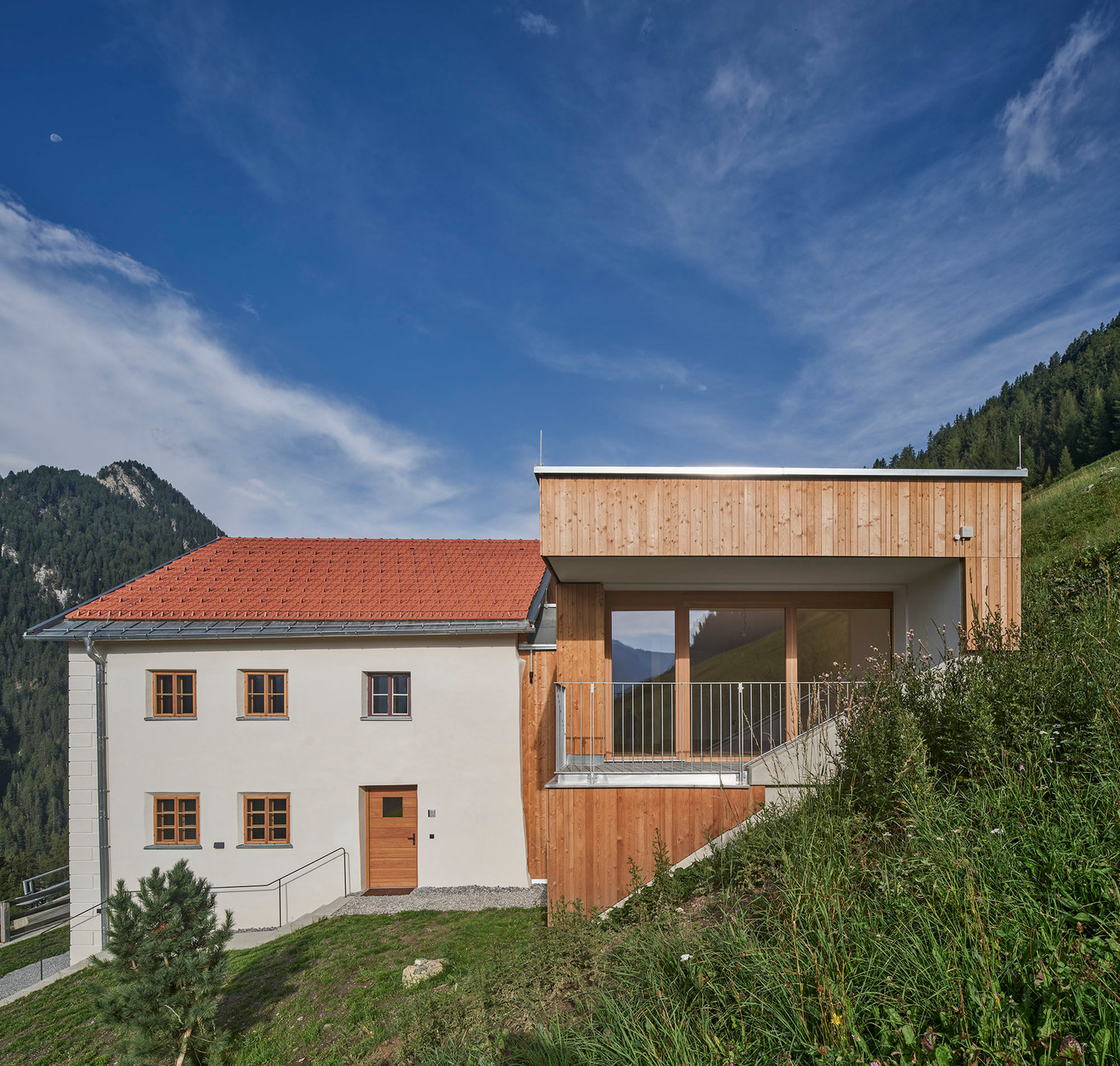 Auf 1.653 m Höhe an der Grenze zur Schweiz befindet sich mit der Gemeinde Spiss eines der entlegensten Siedlungsgebiete von Tirol. Seit Jahren kämpft die Gemeinde mit Abwanderung – Schule, Kindergarten und öffentliche Einrichtungen wurden schon geschlossen, der Bevölkerungsstand ist auf ca. 100 Einwohner:innen gesunken. Auch das Widum stand seit dem Tod des letzten Spisser Pfarrers im Jahr 1973 leer und war – obwohl denkmalgeschützt – dem Verfall preisgegeben. 2017 erwarb der gemeinnützige Wohnbauträger NEUE HEIMAT TIROL die Liegenschaft, um sie als regionales Vorzeigeprojekt zu sanieren und um einen Zubau zu erweitern, wodurch insgesamt drei leistbare Mietwohnungen bei vergleichsweise geringem Bodenverbrauch geschaffen werden konnten.Das denkmalgeschützte Widum wurde von Harald Kröpfl in enger Zusammenarbeit mit dem Bundesdenkmalamt saniert und an heutige Wohnstandards angepasst. So wurde die steinerne Hülle mit einem neuen Kalkputz versehen, die Kastenfenster mit Isolierverglasung originalgetreu nachgebaut, das Dach erneuert und mit einer zeitgemäßen Dämmschicht versehen. Im Inneren wurde die ursprüngliche Bemalung der Wände freigelegt, die alte, von hoher handwerklicher Qualität zeugende Stube erhalten und die ehemalige Rauchkuchl mit ihrem schwarzen Gewölbe in eine moderne Küche transformiert. Das Dachgeschoß wurde zeitgemäß ausgebaut und bietet der etwa 120 m² großen Wohnung einen zusätzlichen hellen Raum.